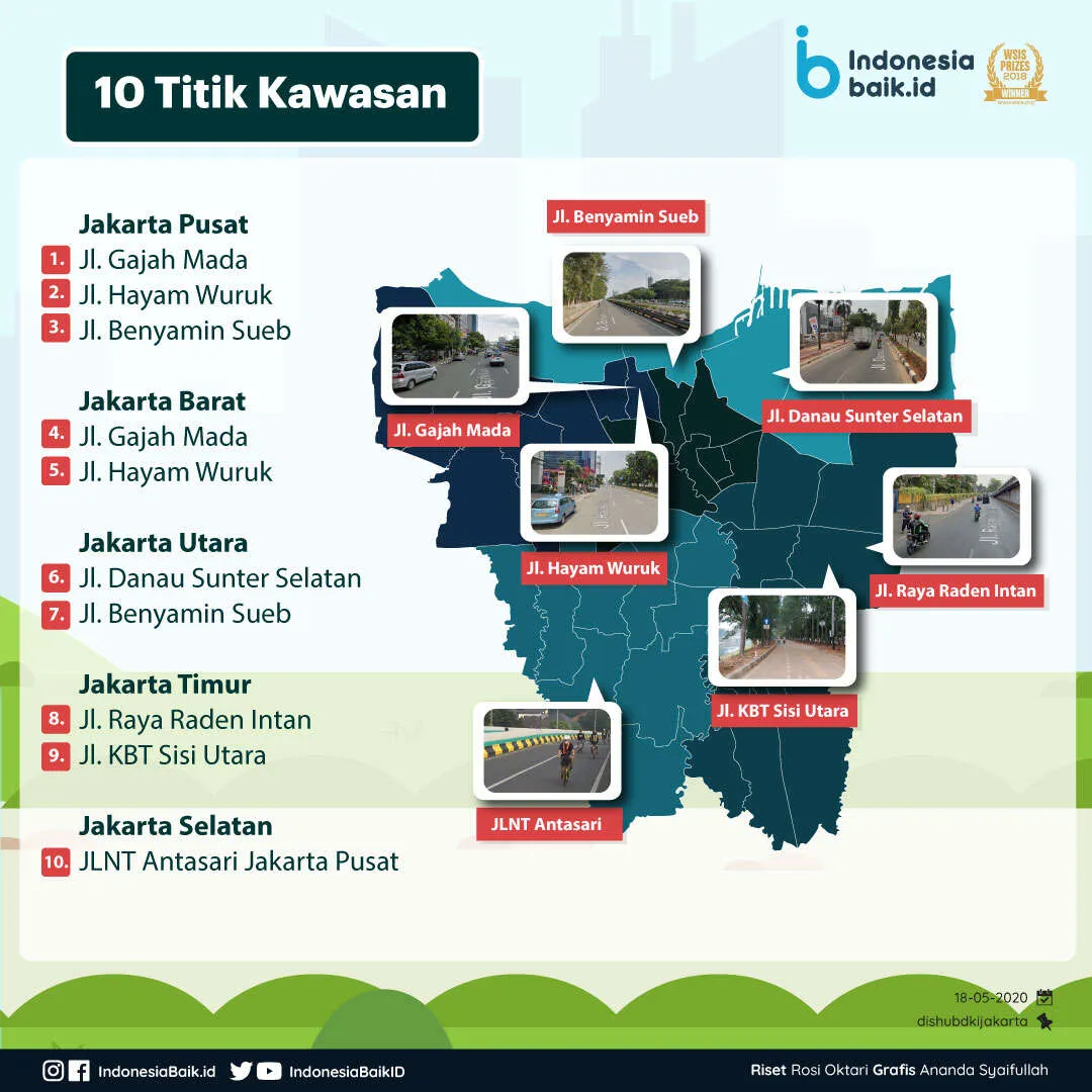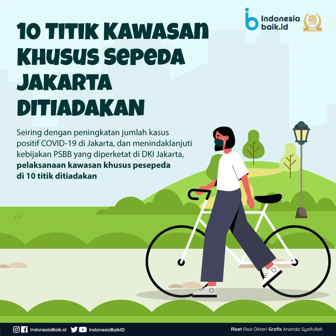 Indonesiabaik.id - Menindaklanjuti kebijakan PSBB Total di Ibu Kota, Pemerintah Provinsi DKI Jakarta dengan ini meniadakan 10 titik Kawasan Khusus Sepeda (KKS) sejak 13 September 2020. Adapun 10 titik kawasan pesepeda itu tersebar di lima wilayah, yakni Jakarta Pusat, Jakarta Barat, Jakarta Utara, Jakarta Timur, dan Jakarta Selatan.