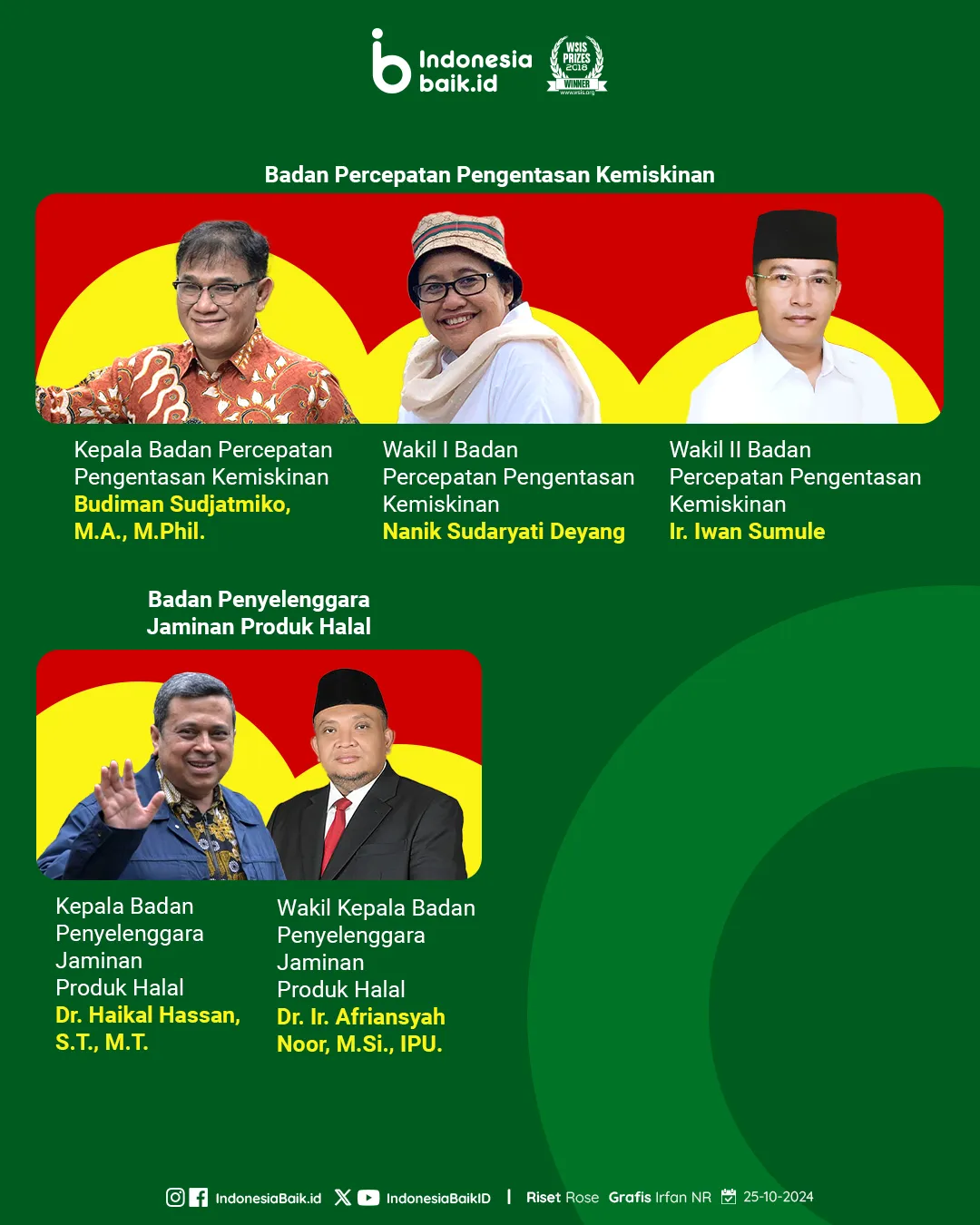 - Kepala Badan Percepatan Pengentasan Kemiskinan: Budiman Sudjatmiko, M.A., M.Phil.