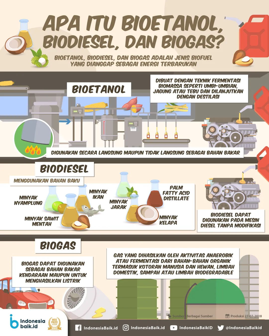 Indonesiabaik.id - Bioetanol, biodiesel, dan biogas adalah jenis biofuel. Biofuel adalah energi yang terbuat dari materi hidup, biasanya tanaman. Biofuel dianggap energi terbarukan, mengurangi peran dari bahan bakar fosil dan telah mendapat perhatian dalam transisi ke ekonomi rendah karbon.