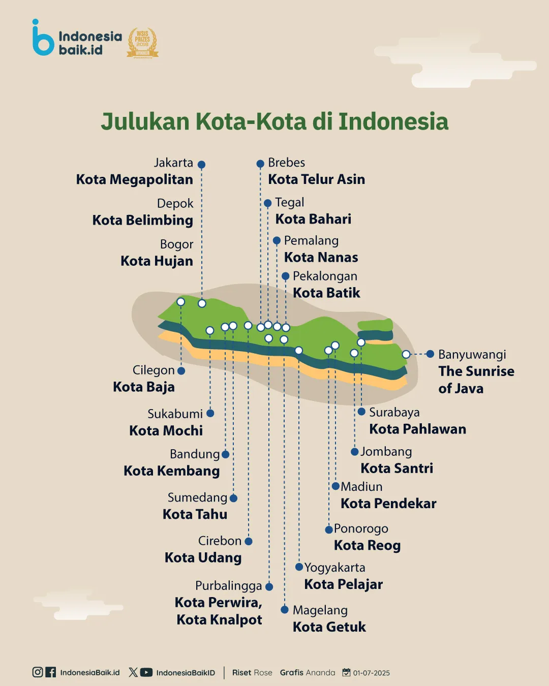 Setiap daerah di Indonesia punya keunikan dan keistimewaan yang dapat dikenali melalui julukannya. Mengenal julukan kota-kota kita adalah cara sederhana untuk memahami keberagaman budaya dan kekayaan nusantara. Jadi, apa julukan kotamu?