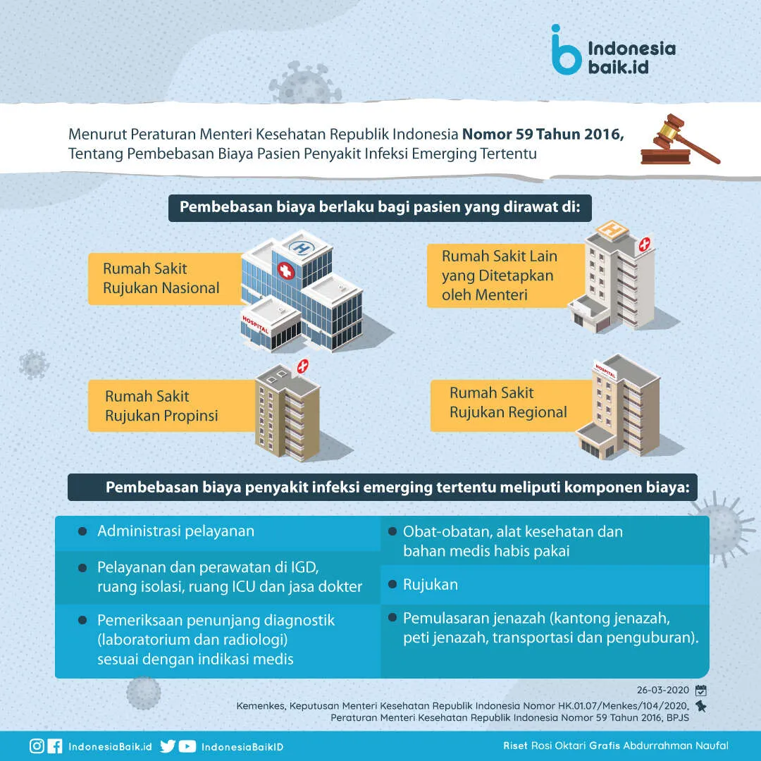 Menurut Peraturan Menteri Kesehatan Republik Indonesia Nomor 59 Tahun 2016, Tentang Pembebasan Biaya Pasien Penyakit Infeksi Emerging Tertentu,