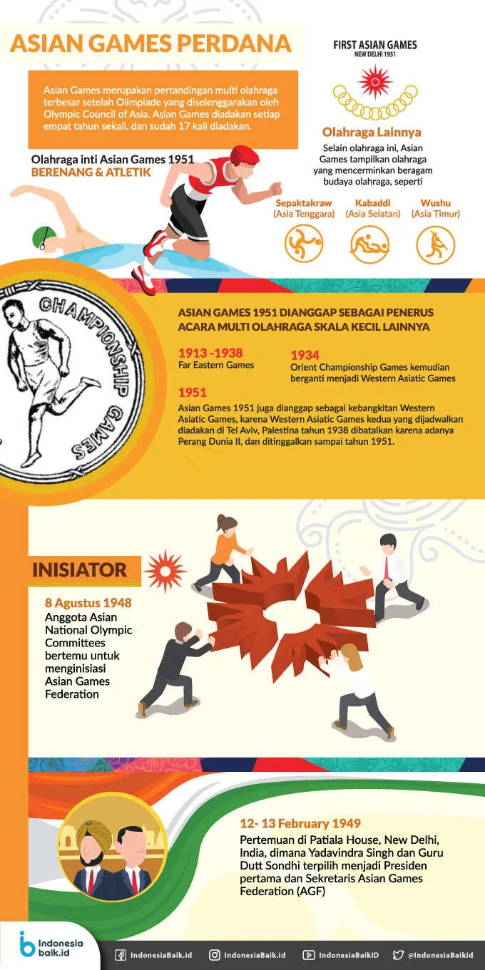 Indonesiabiak.id - Asian Games merupakan pertandingan multi olahraga terbesar setelah Olimpiade yang diselenggarakan oleh Olympic Council of Asia. Asian Games diadakan setiap empat tahun sekali, dan sudah 17 kali diadakan. Asian Games 1951 dianggap sebagai penerus acara multi olahraga skala kecil seperti Far Eastern Games (1913 -1938), Orient Championship Games kemudian berganti menjadi Western Asiatic Games (1934). Asian Games 1951 juga dianggap sebagai kebangkitan Western Asiatic Games, karena Western Asiatic Games kedua yang dijadwalkan diadakan di Tel Aviv, Palestina tahun 1938 dibatalkan karena adanya Perang Dunia II, dan ditinggalkan sampai tahun 1951.