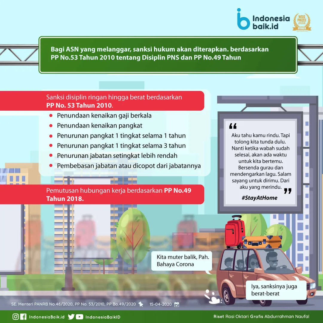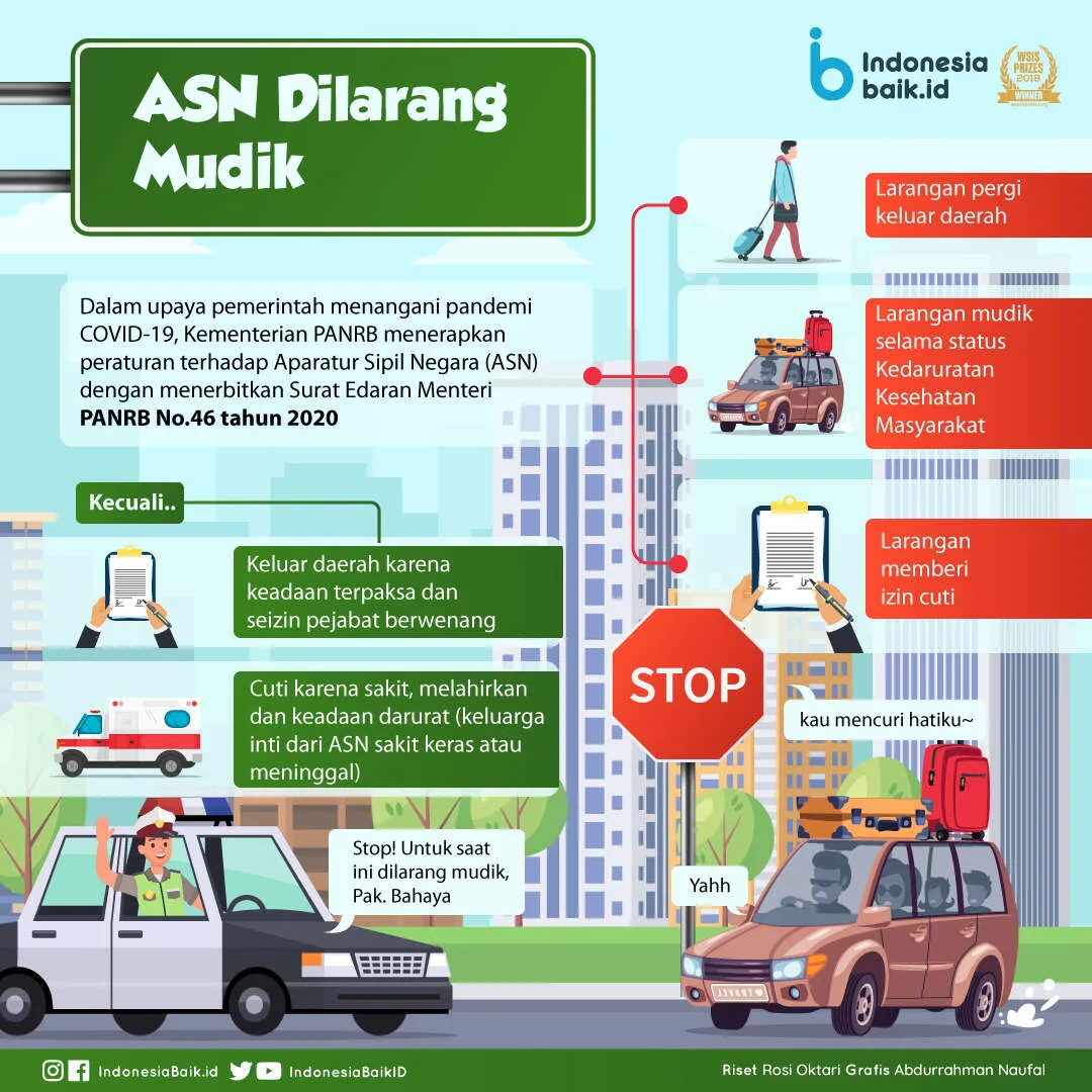 Indonesiabaik.id - Dalam upaya pemerintah menangani wabah virus COVID-19, Aparatur Sipil Negara (ASN) dilarang untuk mudik dan cuti selama masa pandemi.
