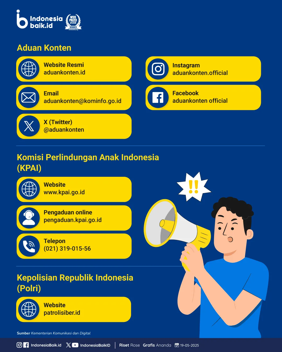 Berikut beberapa saluran resmi yang dapat kamu gunakan untuk melaporkan konten kejahatan digital: