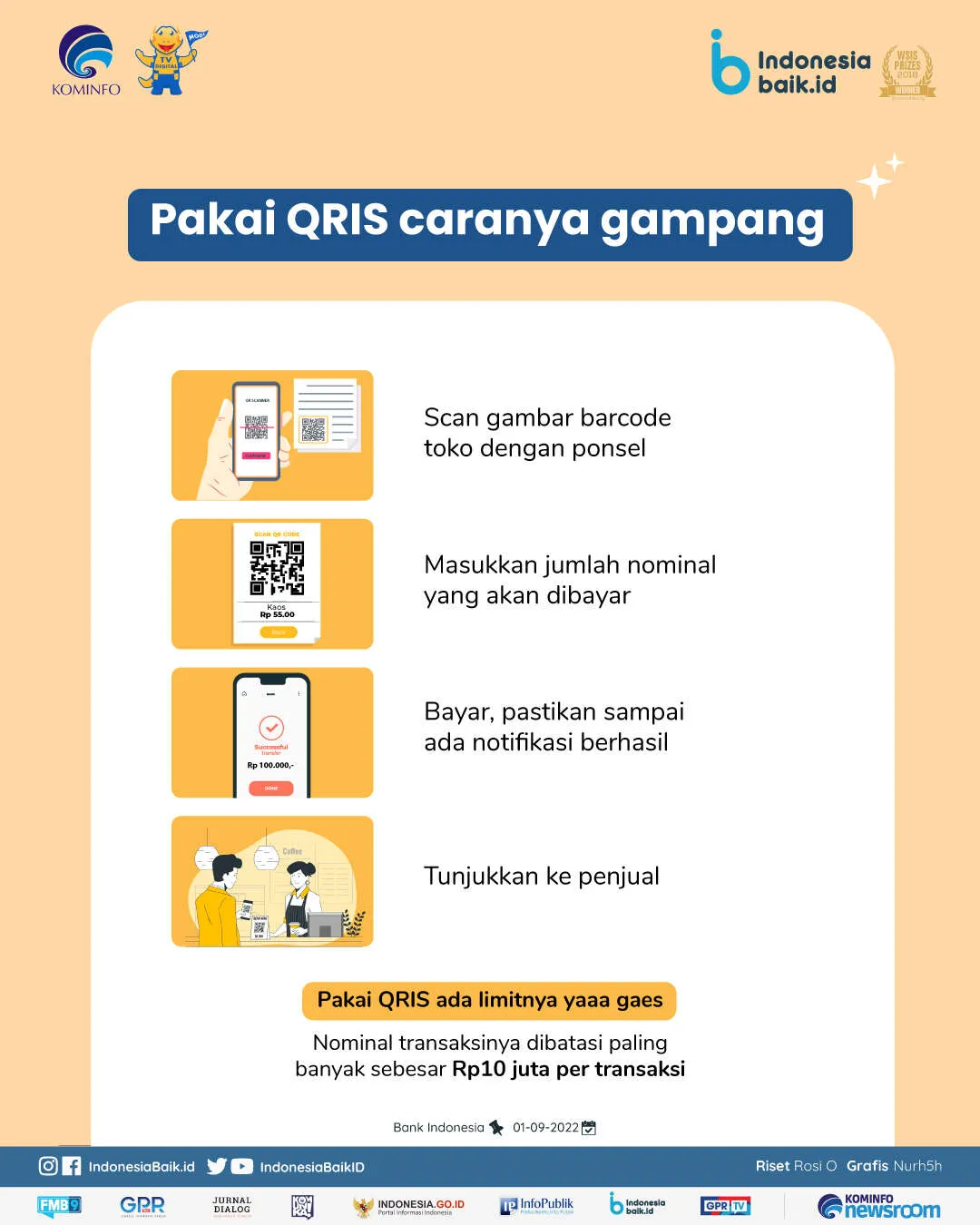 QRIS merupakan standar kode QR yang dimiliki Indonesia, metode yang dikembangkan oleh Bank Indonesia (BI) dan Asosiasi Sistem Pembayaran Indonesia.
