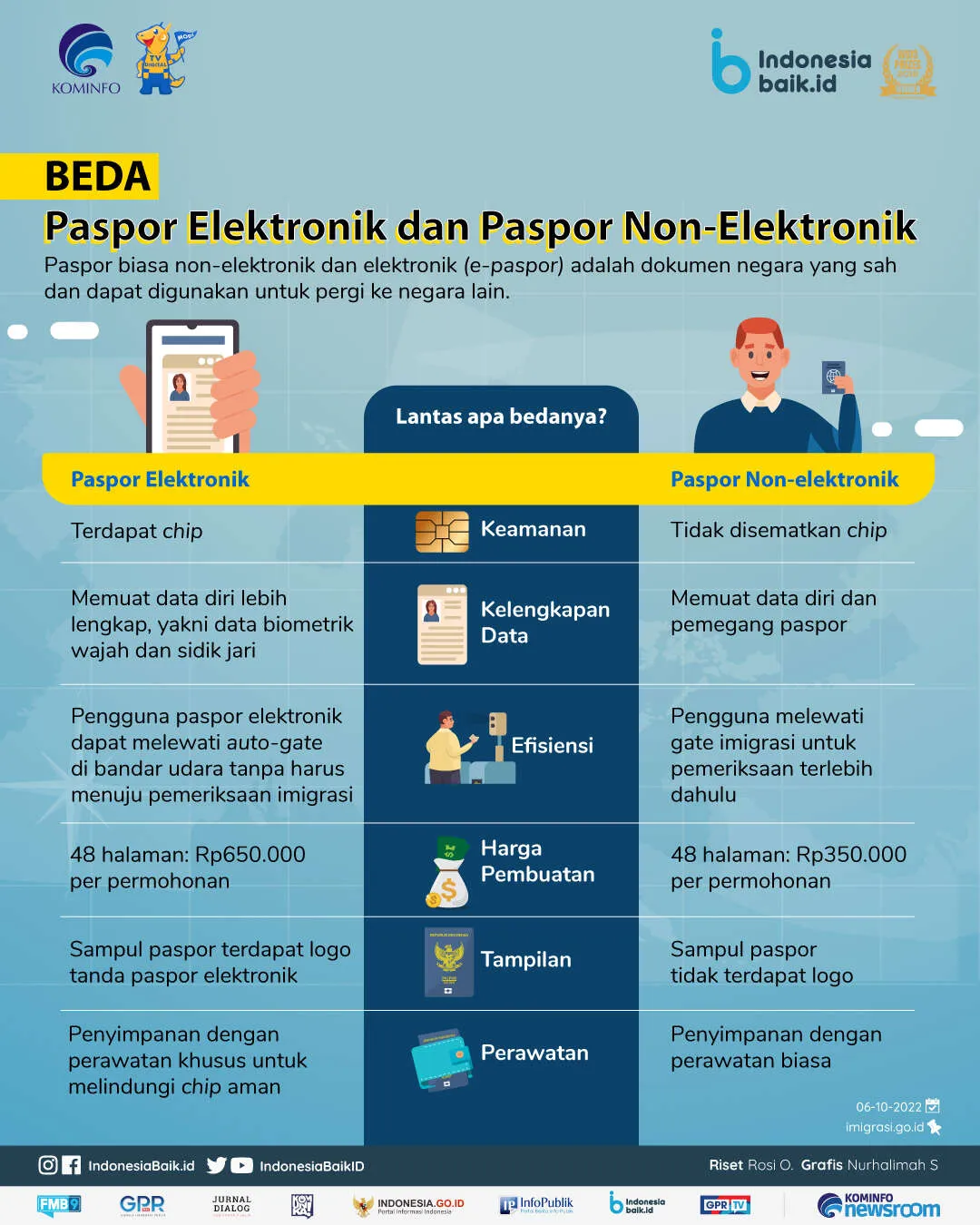 indonesiabaik.id - Paspor biasa non-elektronik dan elektronik (e-paspor) adalah dokumen negara yang sah dan dapat digunakan untuk pergi ke negara lain.