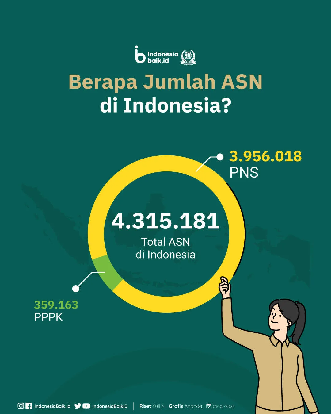 Indonesiabaik.id - Kementerian Pendayagunaan Aparatur Negara dan Reformasi Birokrasi (PANRB) bersama Badan Kepegawaian Negara (BKN) mencatat, jumlah Aparatur Sipil Negara (ASN) di Indonesia.