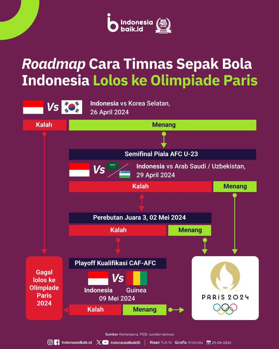 indonesiabaik.id - Tim sepak bola Indonesia berpeluang melaju ke Olimpiade setelah berhasil lolos fase gugur Piala Asia U-23. Seperti diketahui, kompetisi ini merupakan turnamen kualifikasi Olimpiade, di mana 3 tim terbaik akan lolos langsung ke Olimpiade Paris 2024.