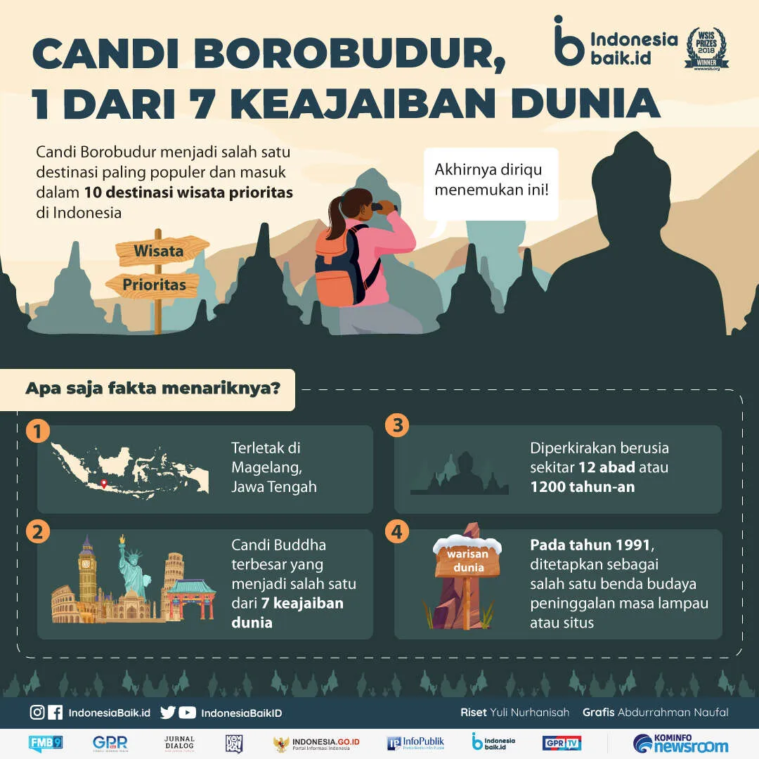 Indonesiabaik.id - Candi Borobudur menjadi salah satu destinasi paling populer di Magelang, Jawa Tengah dan masuk dalam 10 destinasi wisata prioritas di Indonesia. Keberadaannya tidak hanya terkenal di kancah nasional saja, namun juga tingkat international.