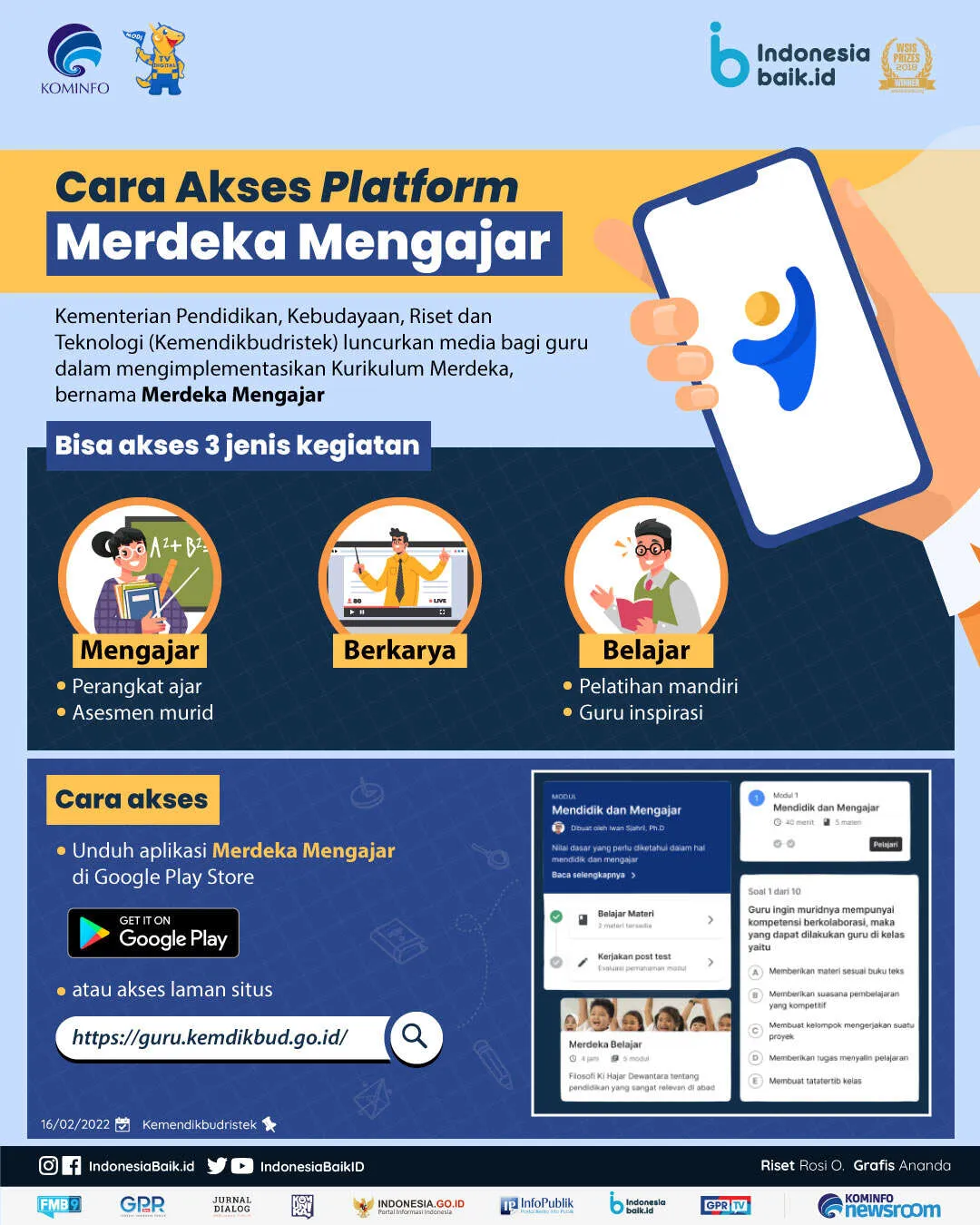 indonesiabaik.id - Kementerian Pendidikan, Kebudayaan, Riset dan Teknologi (Kemendikbudristek) luncurkan media bagi guru dalam mengimplementasikan Kurikulum Merdeka, bernama Merdeka Mengajar.