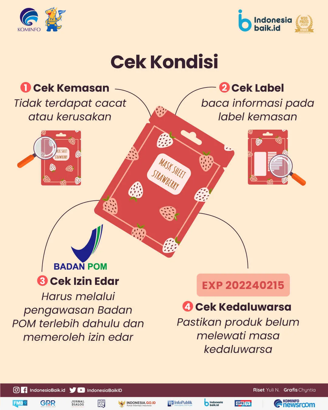 Sebelum membeli atau mengonsumsi produk kosmetika berbentuk masker organik, pembeli wajib melakukan cek kondisi kemasan, label, izin, dan tanggak kedaluwarsa.