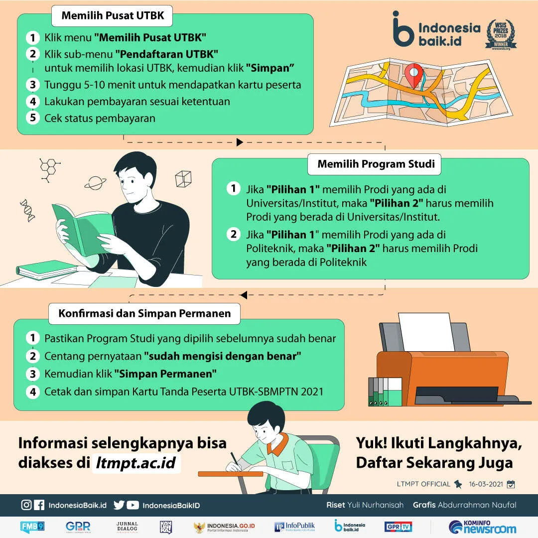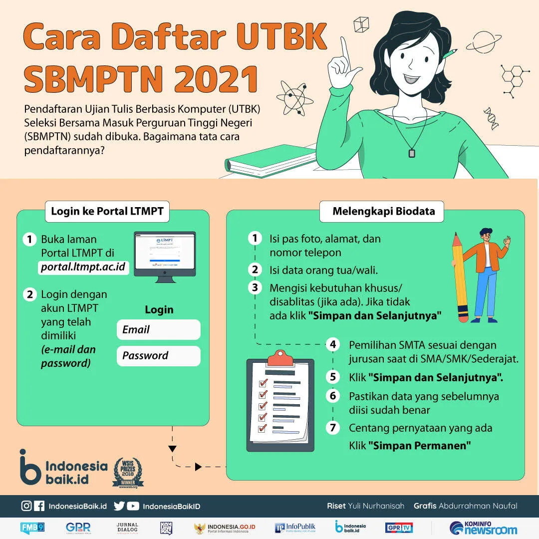 Indonesiabaik.id - Pendaftaran Ujian Tulis Berbasis Komputer (UTBK) Seleksi Bersama Masuk Perguruan Tinggi Negeri (SBMPTN) 2021 mulai dibuka pada Senin (15/3), pukul 15.00 WIB.