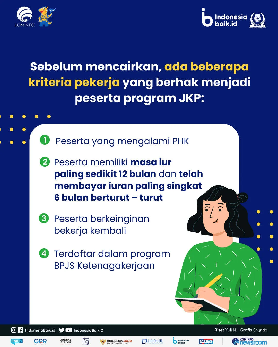 JKP merupakan program yang jaminan yang diberikan bagi pekerja yang mengalami PHK dan memiliki keinginan untuk bekerja kembali. Adapun kriteria pekerja yang berhak menjadi peserta program JKP, di antaranya: