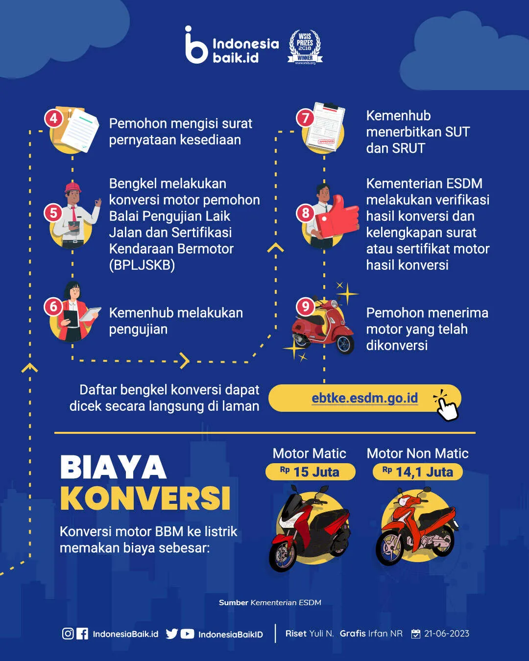 - Kementerian ESDM melakukan verifikasi hasil konversi dan kelengkapan surat atau sertifikat motor hasil konversi