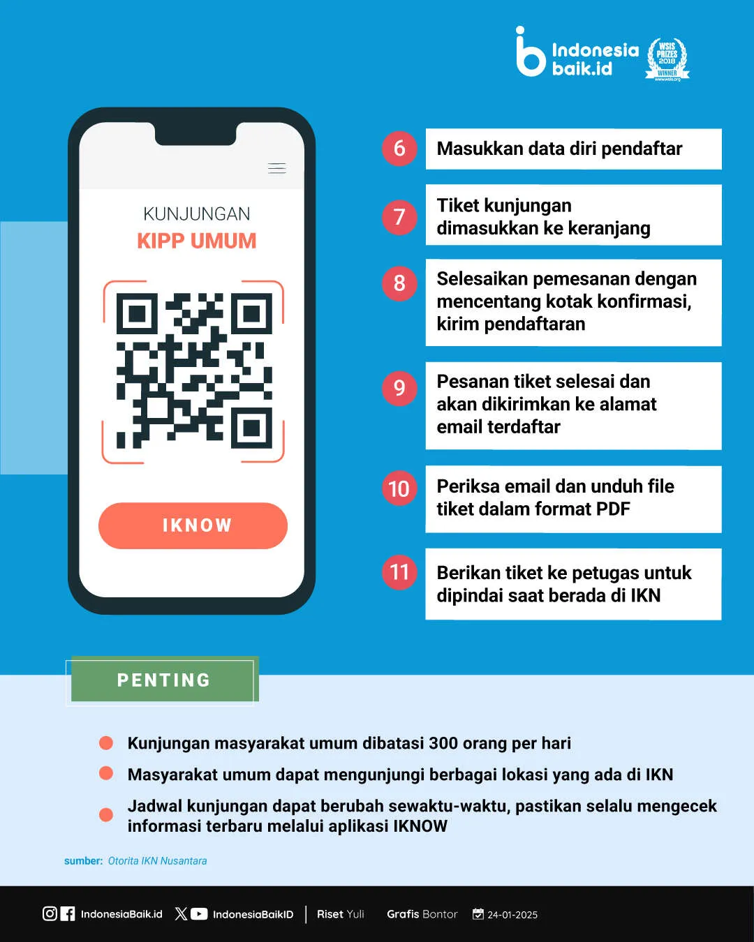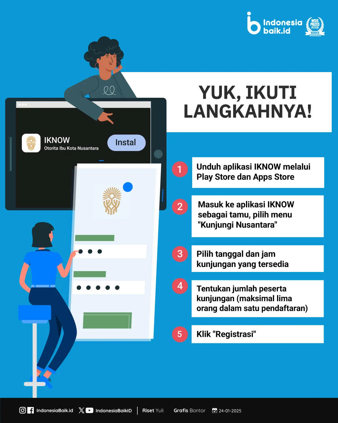 Indonesiabaik.id - Ingin merasakan langsung pesona Ibu Kota Nusantara (IKN)? Masyarakat umum bisa berkunjung ke IKN setiap hari setelah melakukan pendaftaran melalui aplikasi IKNOW. Kunjungan ke IKN dibuka setiap hari. Namun, kuota pengunjung IKN dibatasi hanya 300 orang per hari.
