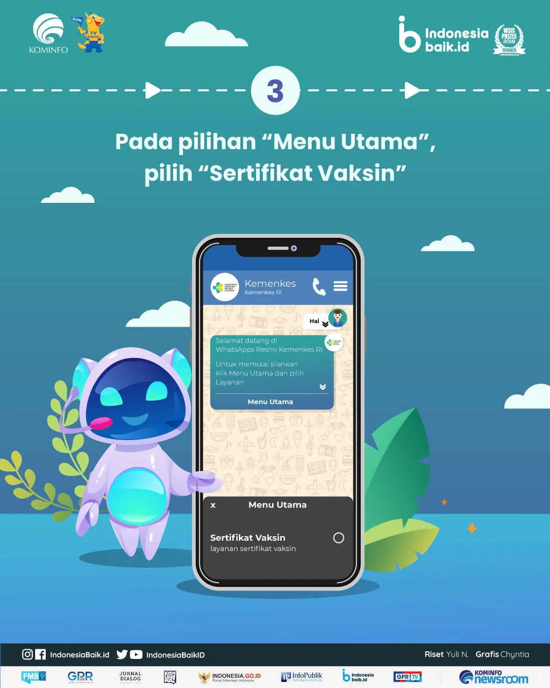 Fitur baru Chatbot WhatsApp ini dibuat untuk mempercepat respon pengaduan masyarakat terkait sertifikat vaksinasi yang biasanya dilakukan melalui email dan call center 119.