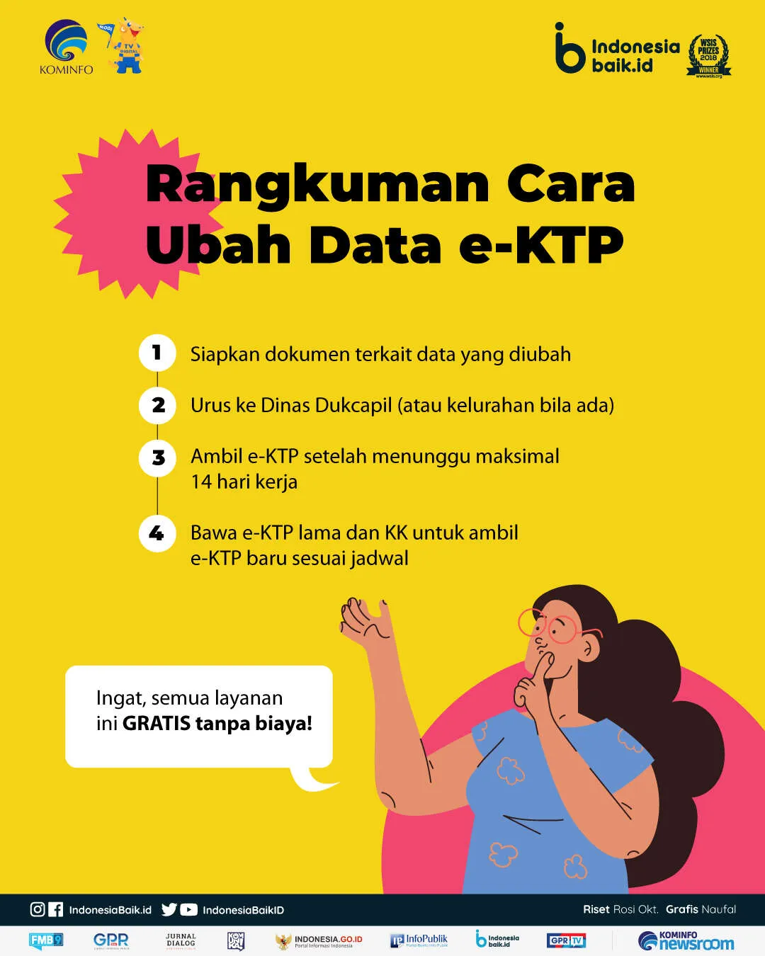 Prosedurnya adalah membawa dokumen pendukung untuk proses perubahan elemen data. Selain itu, prosedur ini tak dipungut biaya alias gratis.