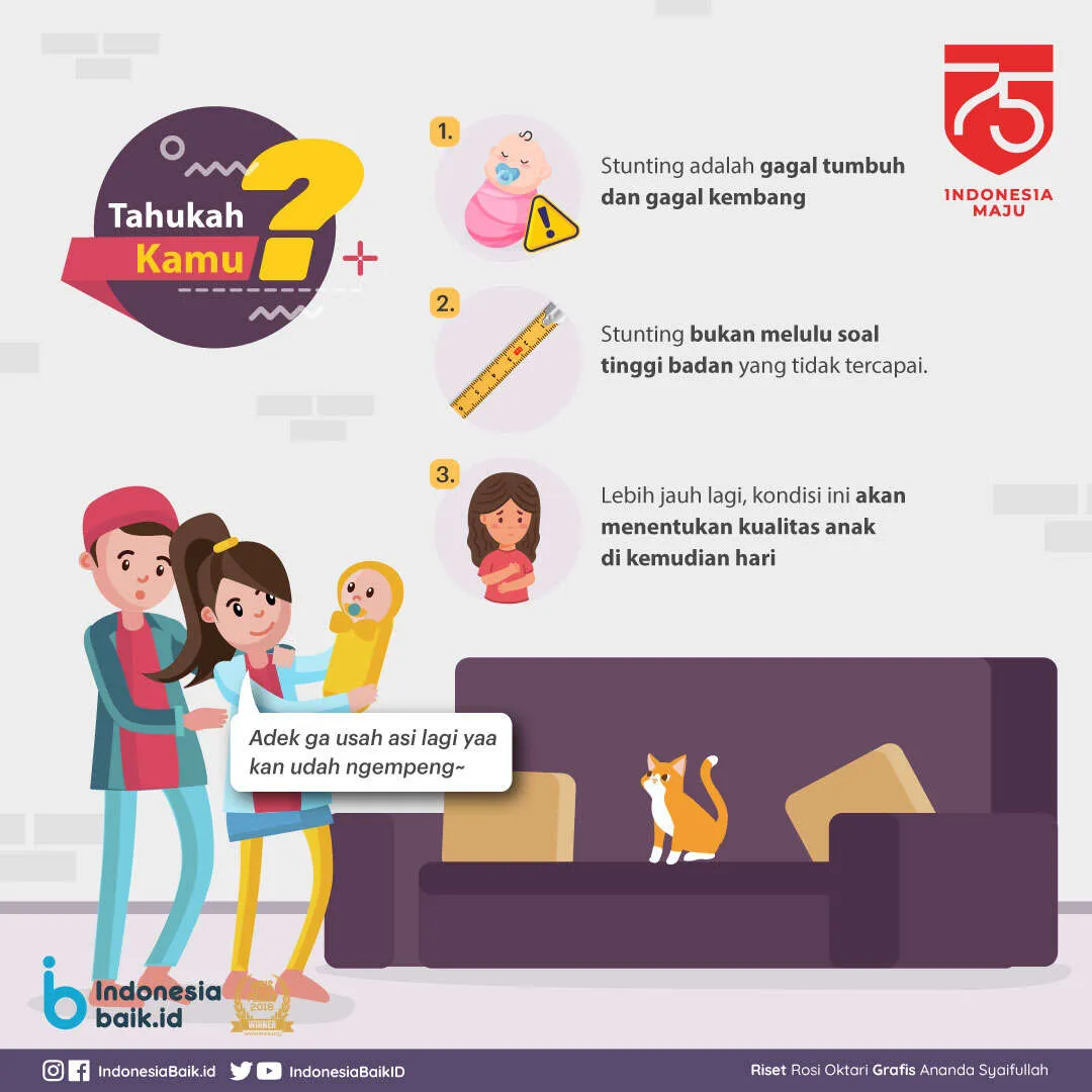Stunting adalah gagal tumbuh dan gagal kembang. Stunting bukan melulu soal tinggi badan yang tidak tercapai. Lebih jauh lagi, kondisi ini akan menentukan kualitas anak di kemudian hari.