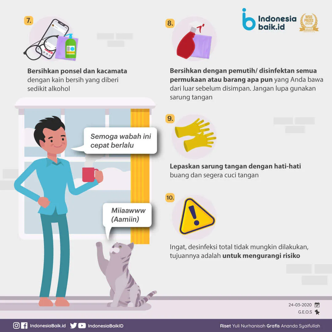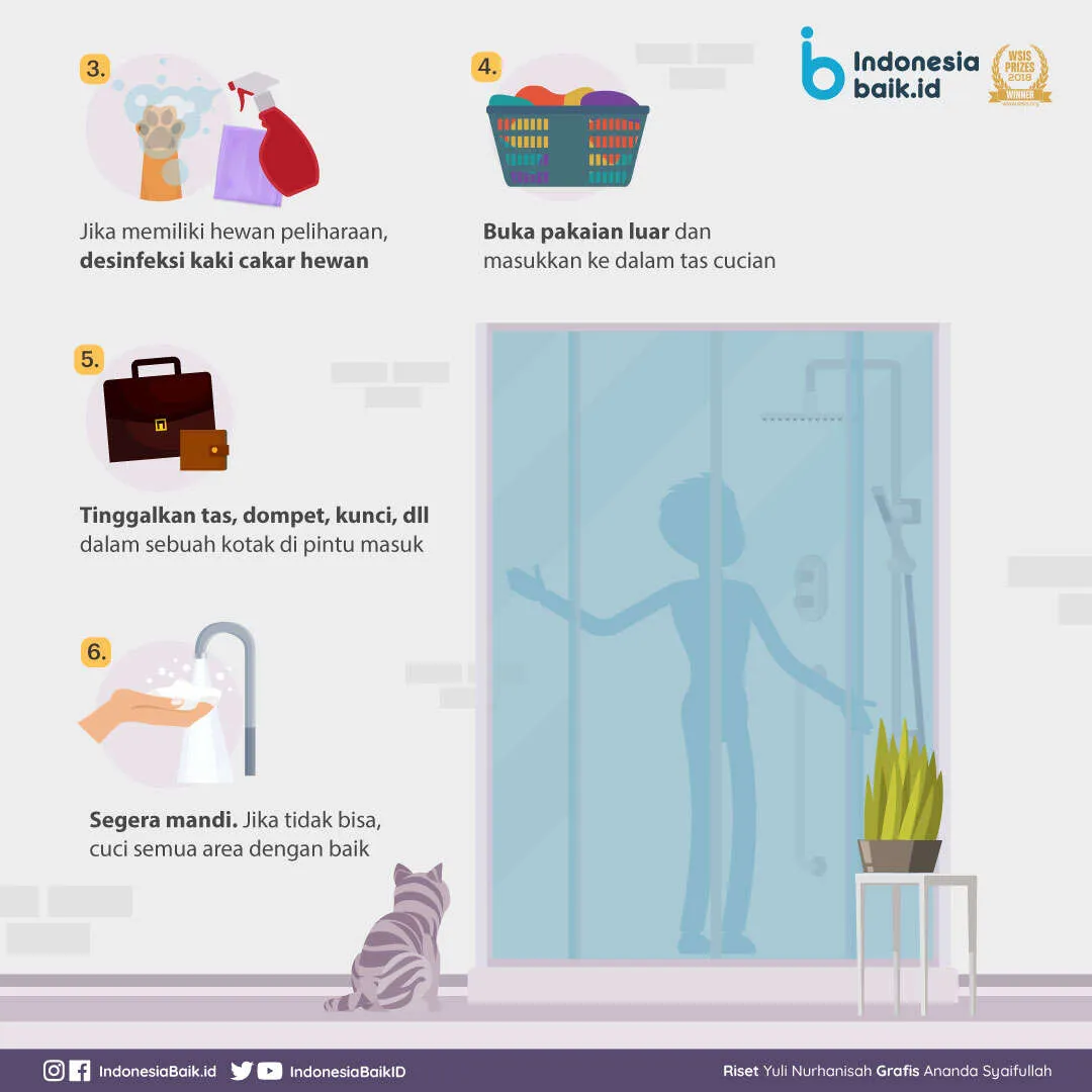 - Jika memiliki hewan peliharaan, desinfeksi kaki cakar hewan ketika sudah keluar