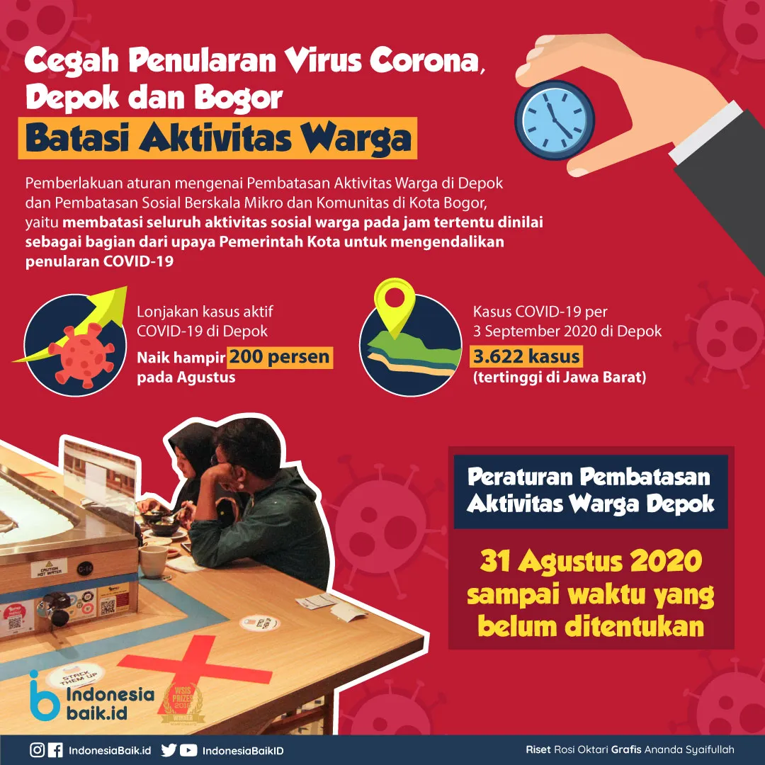 Indonesiabaik.id - Depok dan Bogor, sebagai daerah berzona merah dengan angka penularan virus corona tertinggi di Jawa Barat mulai memberlakukan jam malam.