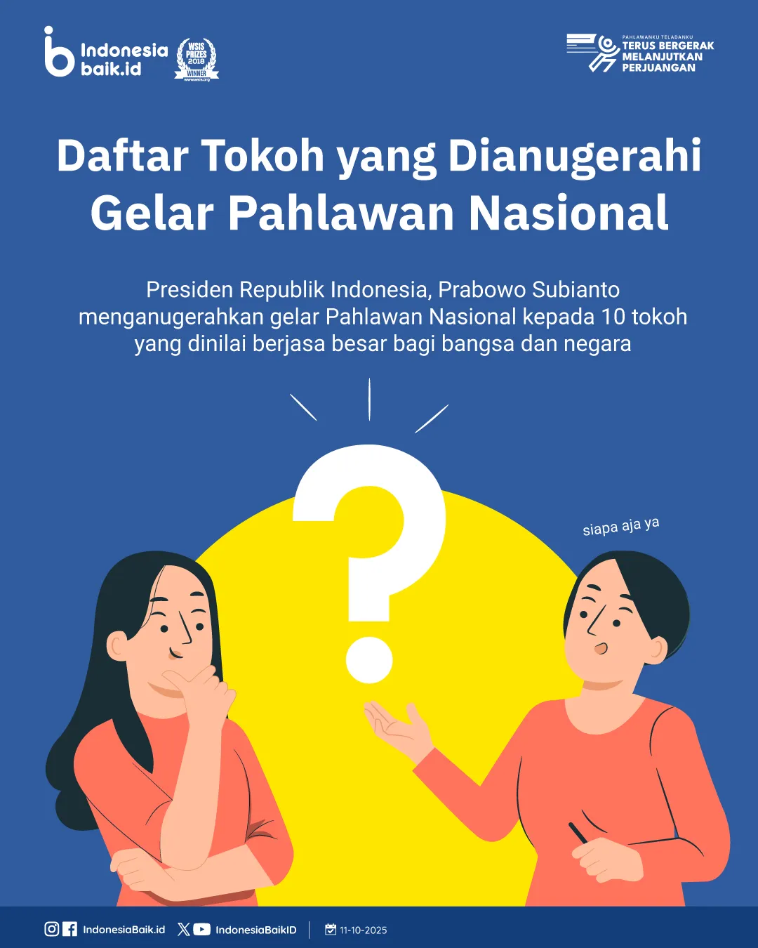 Pada tahun 2025, Presiden Republik Indonesia Prabowo Subianto secara resmi menganugerahkan gelar Pahlawan Nasional kepada 10 tokoh yang dinilai memiliki kontribusi luar biasa bagi bangsa dan negara.