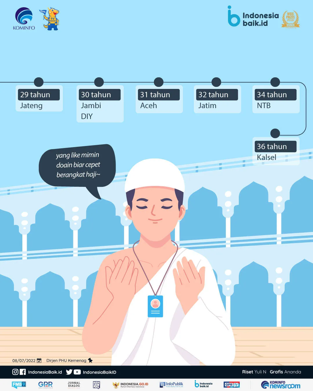 Dikutip dari akun Instagram resmi Direktorat Jenderal Penyelenggaraan Haji dan Umrah, berikut adalah rata-rata waktu tunggu haji per provinsi di Indonesia berdasarkan data SISKOHAT Kemenag per 23 Februari 2022: