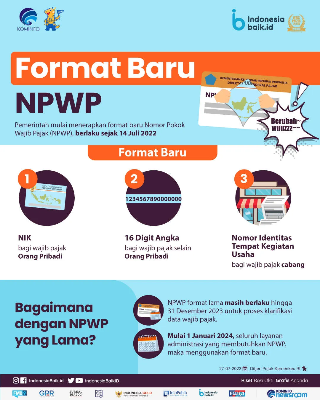 Sementara itu, bagi WP selain OP tinggal menambahkan angka 0 di depan NPWP lama atau format 15 digit, dan bagi WP cabang akan diberikan Nomor Identitas Tempat Kegiatan Usaha oleh DJP.