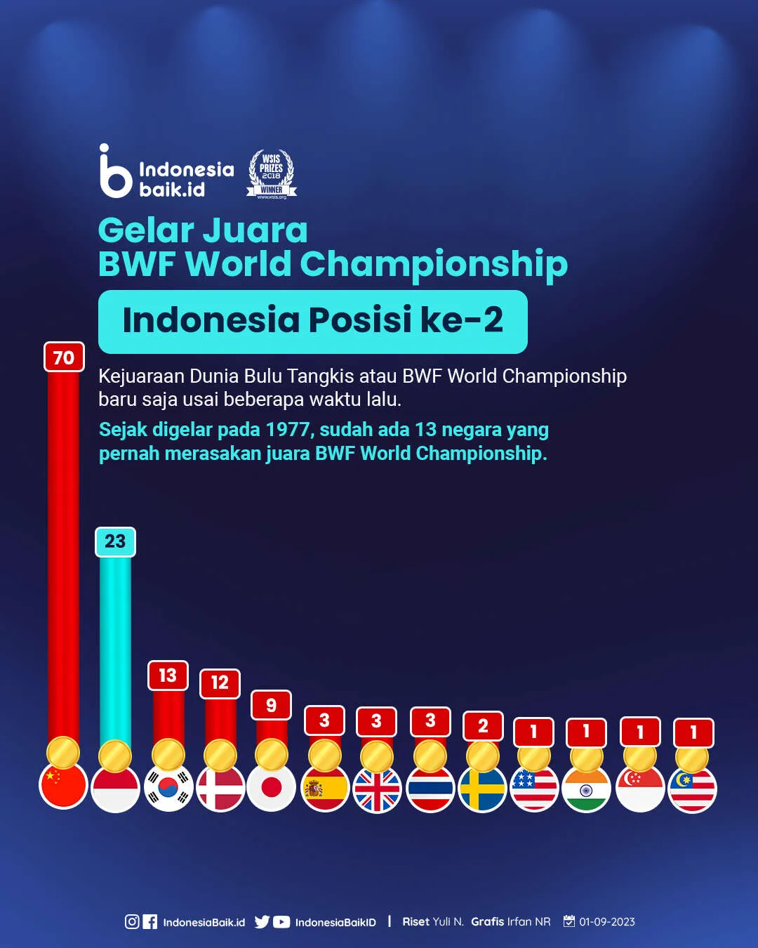 Gelar Juara BWF World Championship, Indonesia Posisi ke-2