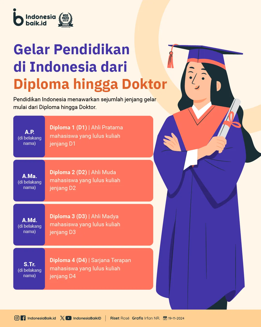 Indonesiabaik.id — Pendidikan Indonesia menawarkan sejumlah jenjang gelar mulai dari Diploma hingga Doktor.