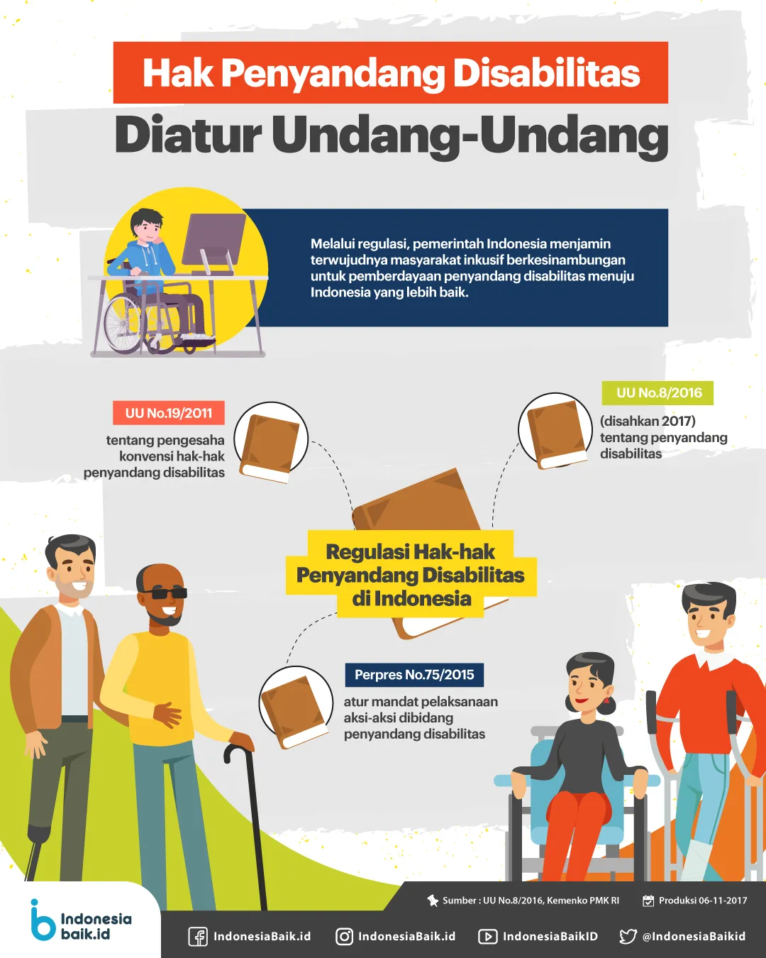 Hak-hak tersebut sudah diatur oleh pemerintah yang terdapat pada undang-undang No. 19 tahun 2011 tentang konversi hak-hak penyandang disabilitas. Ada pula Peppres No.75 tahun 2005 yang mengatur mandat pelaksanaan aksi-aksi di bidang penyandang disabilitas. Serta UU No. 18 tahun 2016 tentang penyandang disabilitas.