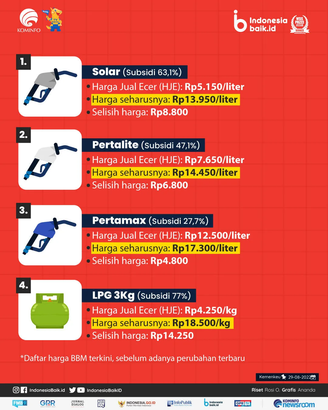 indonesiabaik.id - Harga BBM saat ini dinilai jauh lebih murah dibanding dari harga seharusnya yang dikarenakan adanya subsidi pemerintah.