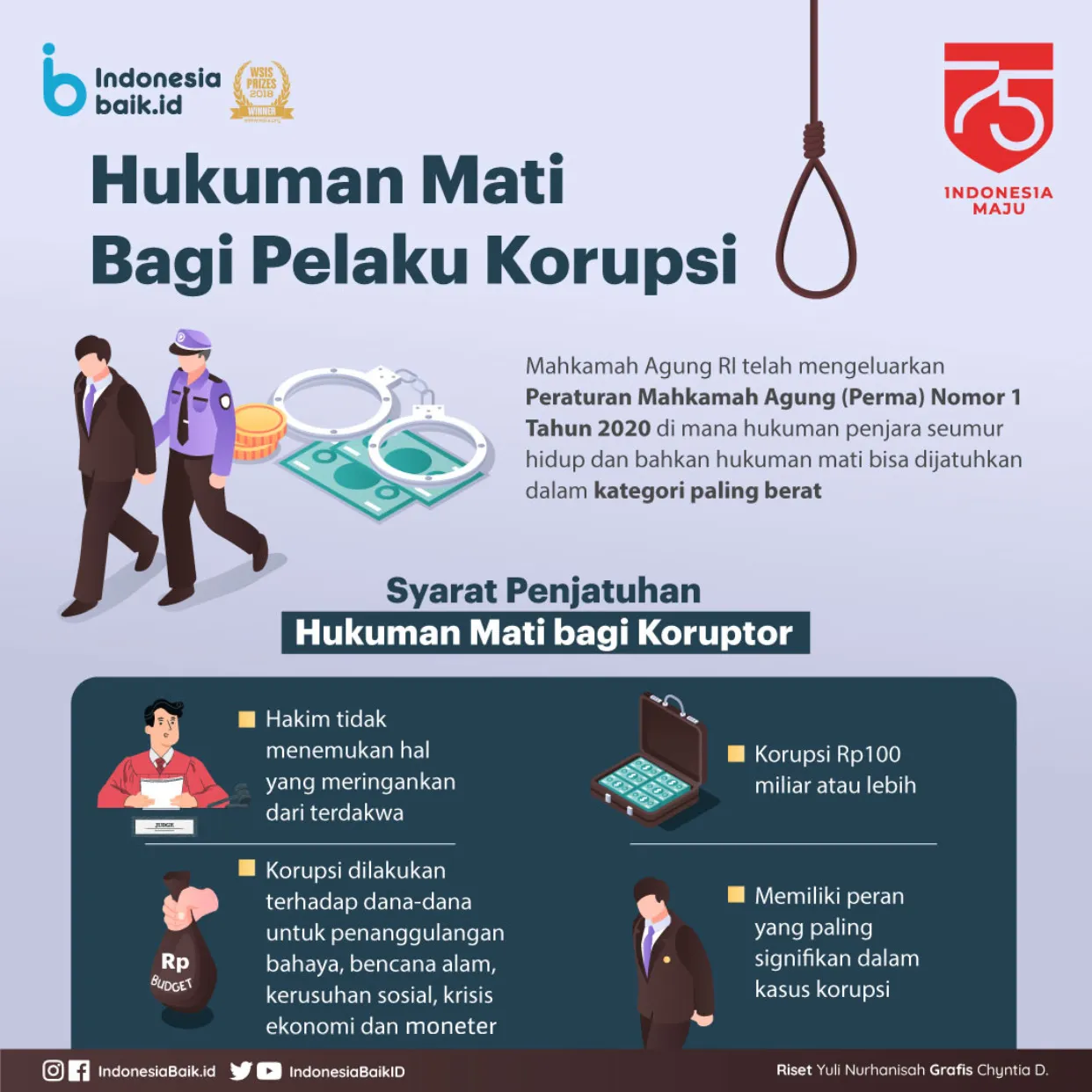 Indonesiabaik.id - Mahkamah Agung RI telah mengeluarkan Peraturan Mahkamah Agung (Perma) Nomor 1 Tahun 2020 tentang Pedoman Pemidanaan Pasal 2 dan Pasal 3 Undang-undang Pemberantasan Korupsi, yang mana Perma tersebut banyak diapresiasi oleh berbagai pihak, khususnya DPR, Komisi Pemberantasan Korupsi, dan berbagai pihak lainnya.
