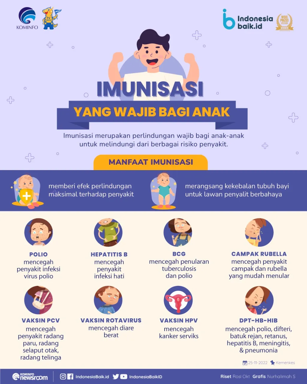 indonesiabaik.id - Imunisasi merupakan perlindungan wajib bagi anak-anak untuk melindungi dari berbagai risiko penyakit.