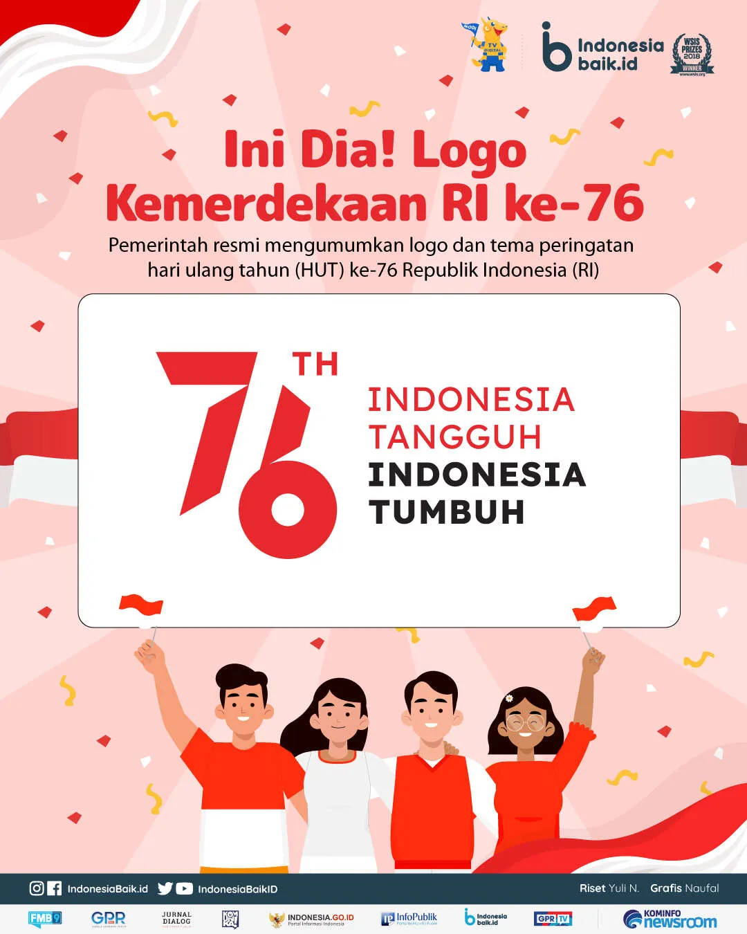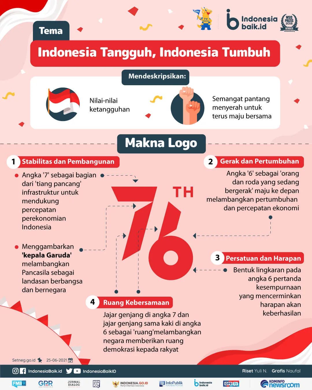 Indonesiabaik.id - Pemerintah resmi mengumumkan logo dan tema peringatan hari ulang tahun (HUT) ke-76 Republik Indonesia (RI) yang diunggah oleh situs resmi Kementerian Sekretariat Negara, 17 Juni 2021.