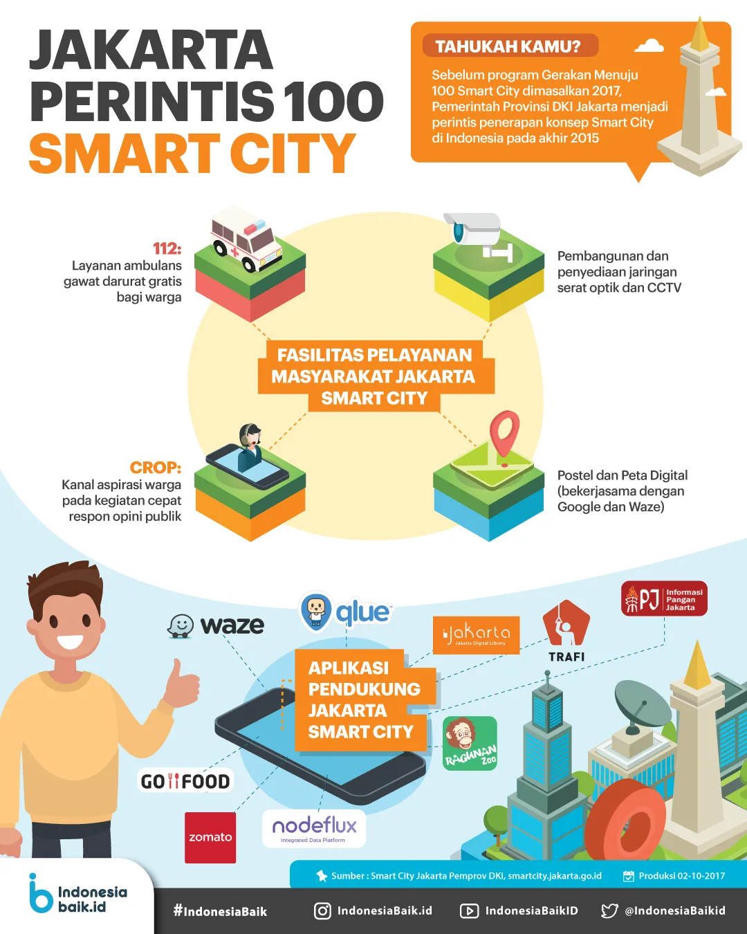 Adapun sebelum program Gerakan Menuju 100 Smart City dimasalkan di Indonesia mulai 2017, Pemerintah Provinsi DKI Jakarta telah menjadi perintis penerapan konsep Smart City di Indonesia pada akhir 2015.