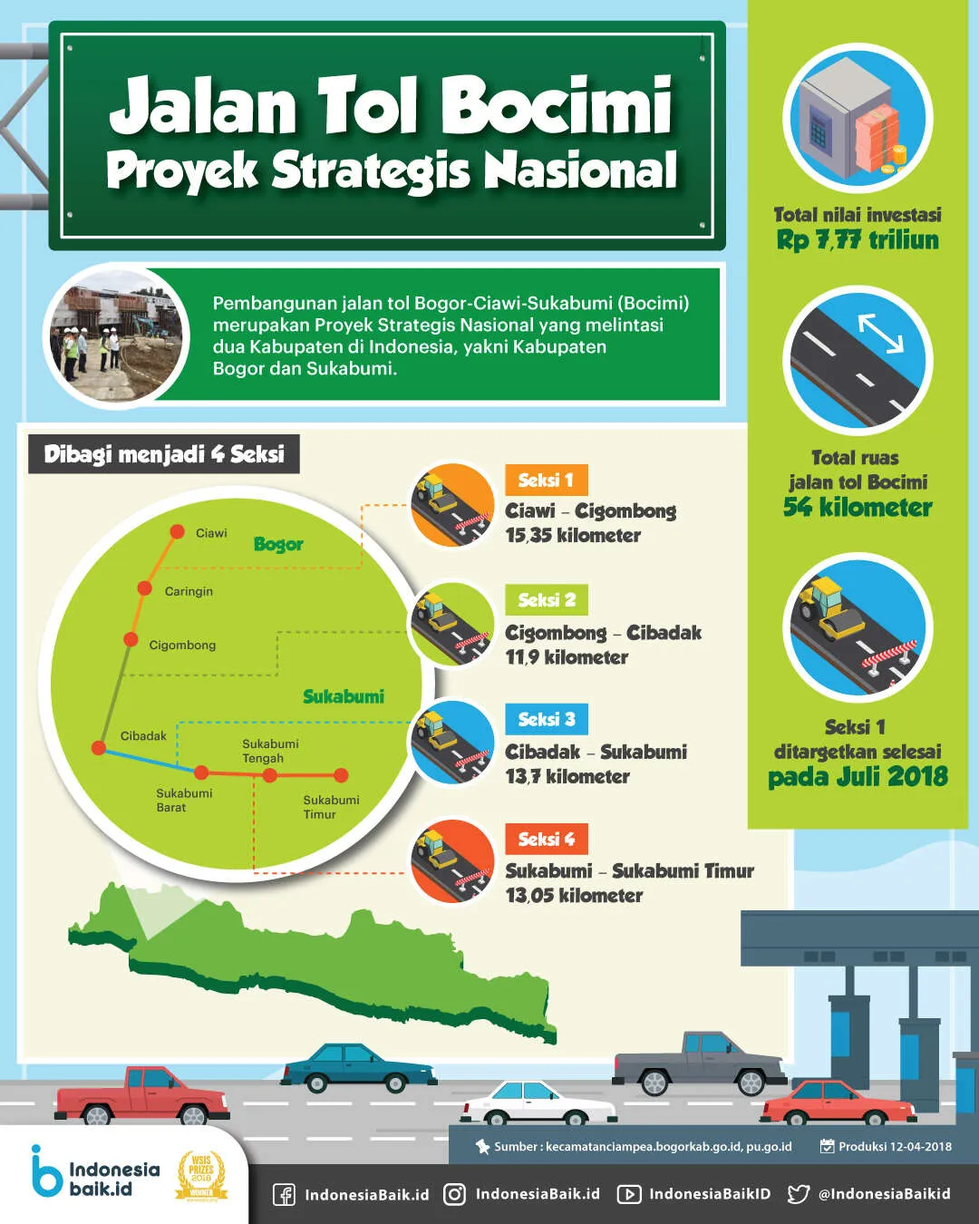 Indonesiabaik.id - Proyek jalan tol Bogor-Ciawi-Sukabumi (Bocimi) merupakan salah satu dari rangkaian Proyek Strategis Nasional yang dicanangkan oleh Pemerintah. Tol Bocimi diharapkan dapat mengurangi kemacetan yang selama ini terjadi bila ada perjalanan yang menuju ke arah Sukabumi.