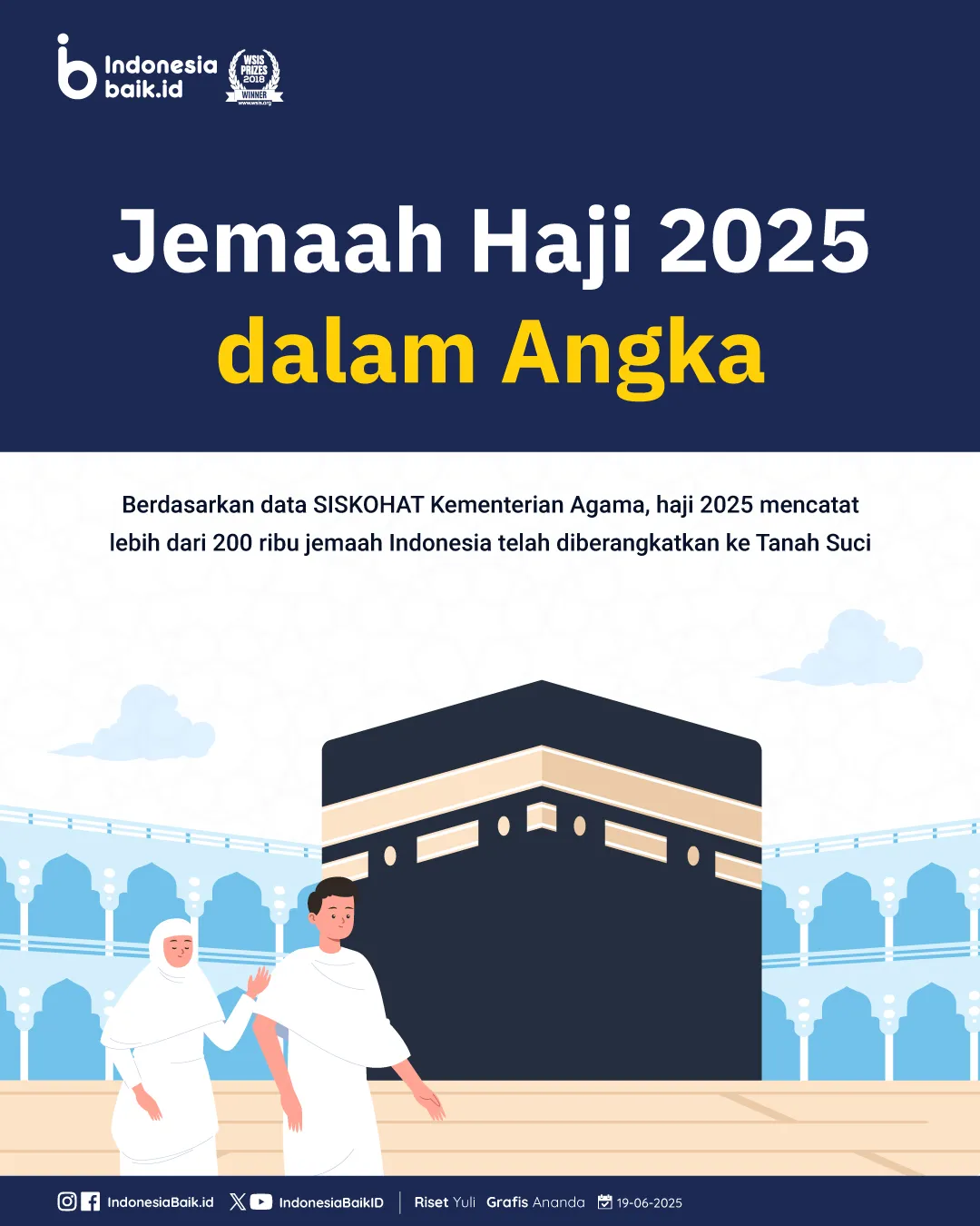 Indonesiabaik.id-Berdasarkan data SISKOHAT Kementerian Agama, tercatat sebanyak 203.149 jemaah haji Indonesia telah diberangkatkan ke Tanah Suci pada musim haji tahun 2025. Angka ini menunjukkan komitmen kuat masyarakat Indonesia untuk melaksanakan rukun Islam kelima, sekaligus menjadi salah satu rombongan haji terbesar di dunia.