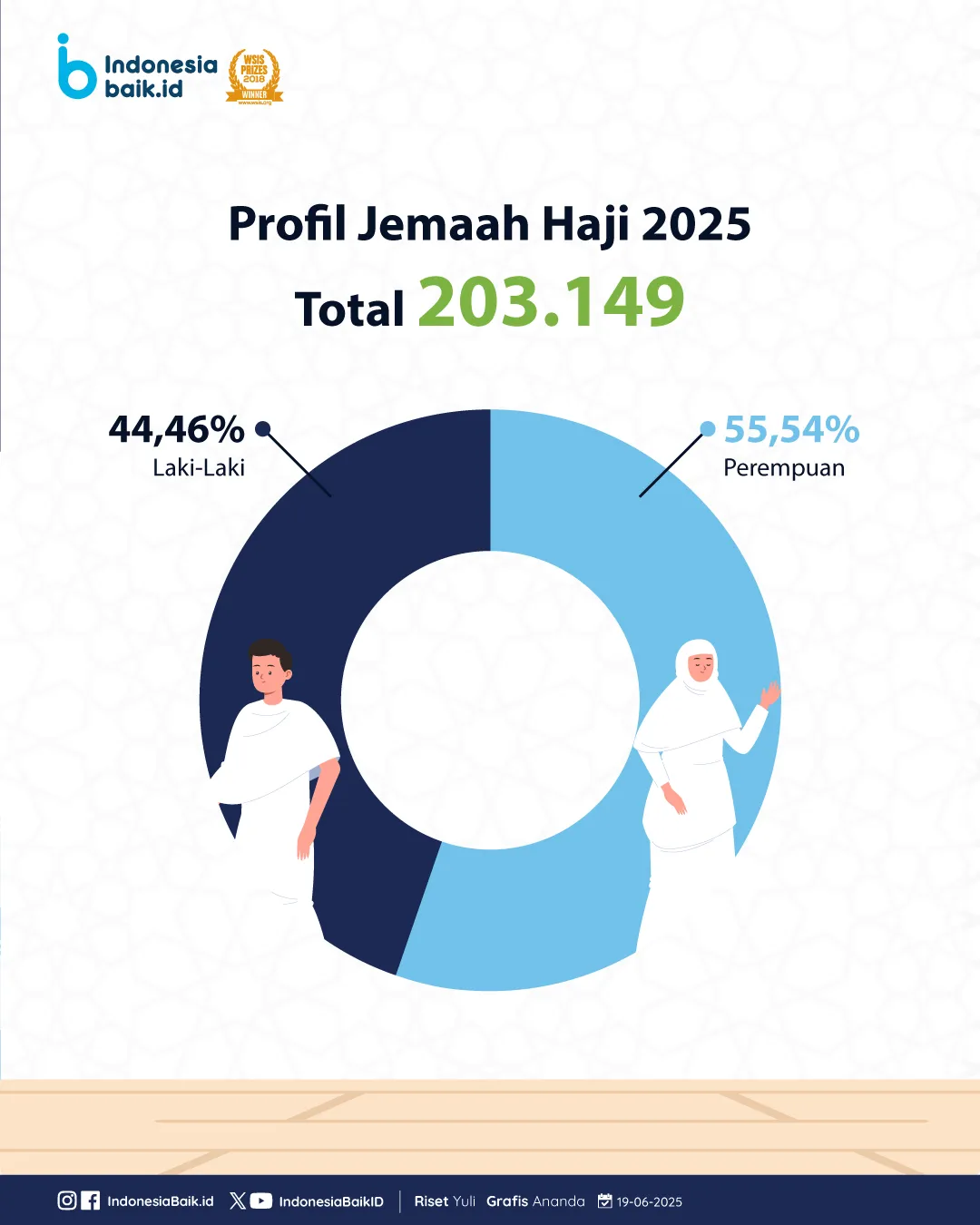 Menariknya, mayoritas jemaah haji tahun ini adalah perempuan, yaitu sebanyak 55,54%, sementara 44,46% lainnya adalah laki-laki. Fakta ini menunjukkan tren yang konsisten dalam beberapa tahun terakhir, di mana partisipasi perempuan dalam ibadah haji terus meningkat.