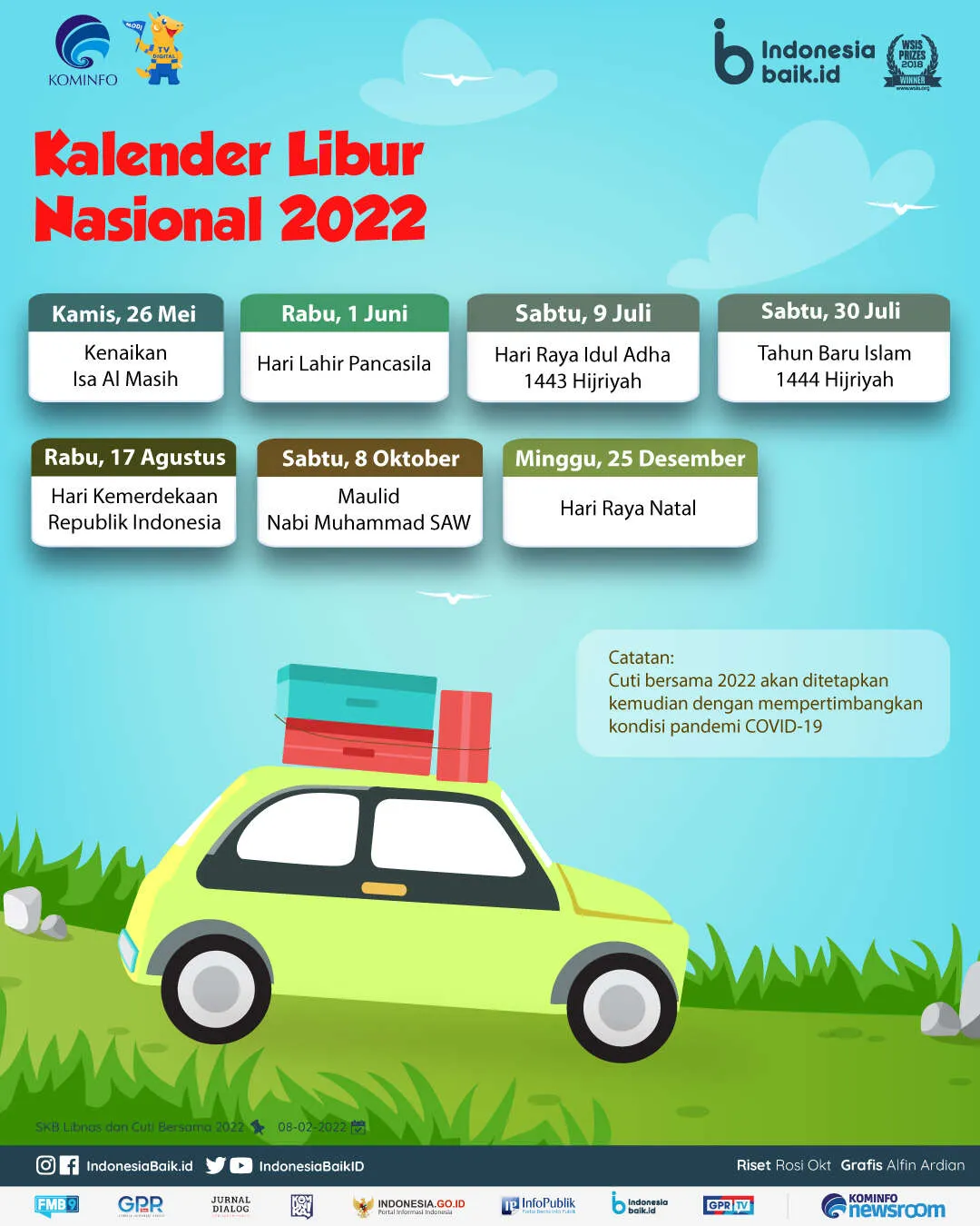 indonesiabaik.id - Surat Keputusan Bersama (SKB) 3 Menteri No.3 dan 4 Tahun 2021 menetapkan dan menyepakati daftar hari libur nasional 2022.