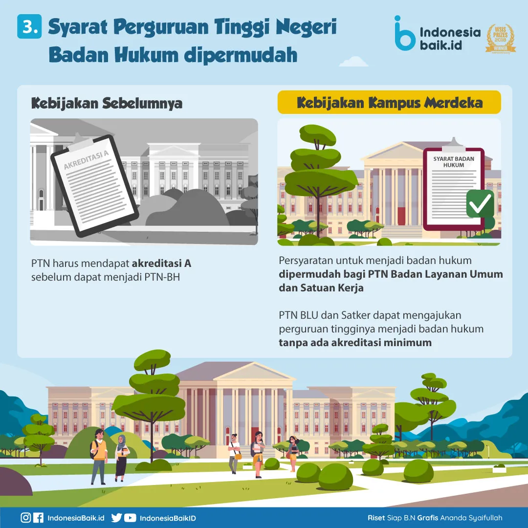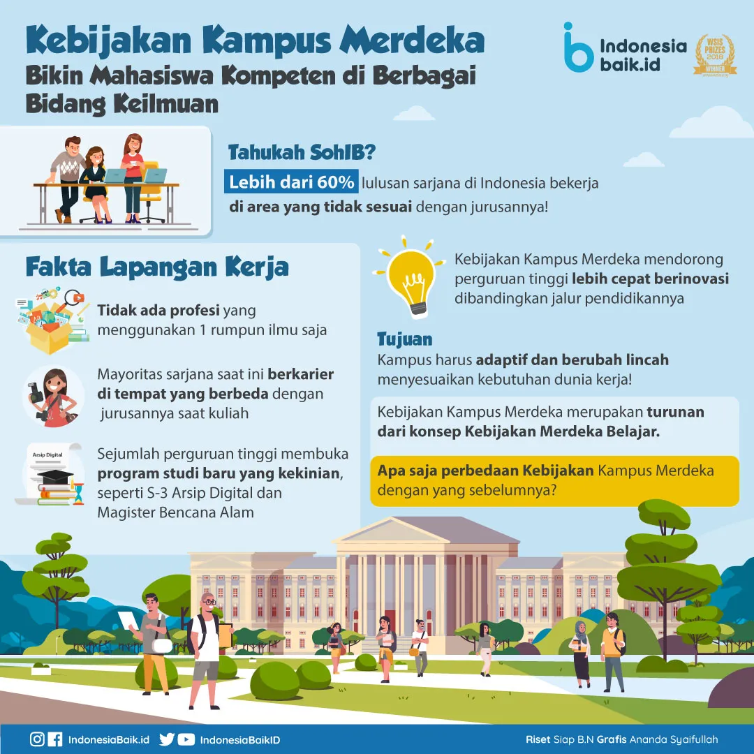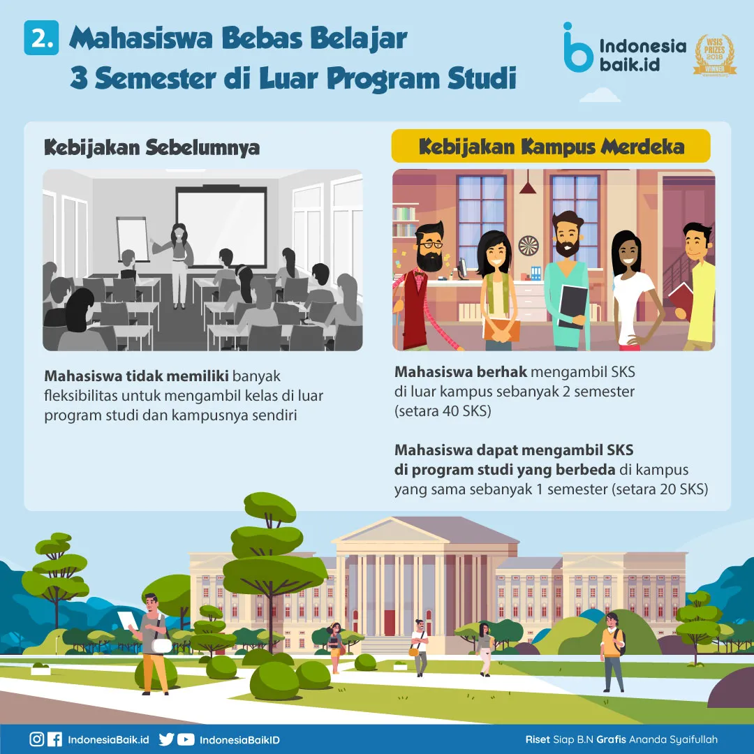 Mahasiswa pun harus demikian. Karena itu, mereka diberi kebebasan belajar tiga semester di luar program studi asal. Tujuannya adalah agar lulus perguruan tinggi benar-benar siap menghadapi dunia kerja.