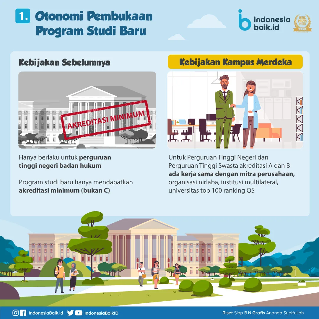 Hal itu tertuang dalam empat pokok kebijakan Merdeka Belajar yang diluncurkan Kemendikbud pada 24 Januari 2020 di Jakarta. Kebijakan Merdeka Belajar dinilai selaras dengan impian banyak perguruan tinggi di Indonesia saat ini.