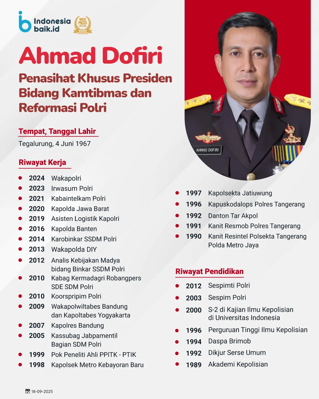 - Ahmad Dofiri sebagai Penasihat Khusus Presiden Bidang Keamanan dan Ketertiban Masyarakat, sekaligus Reformasi Kepolisian