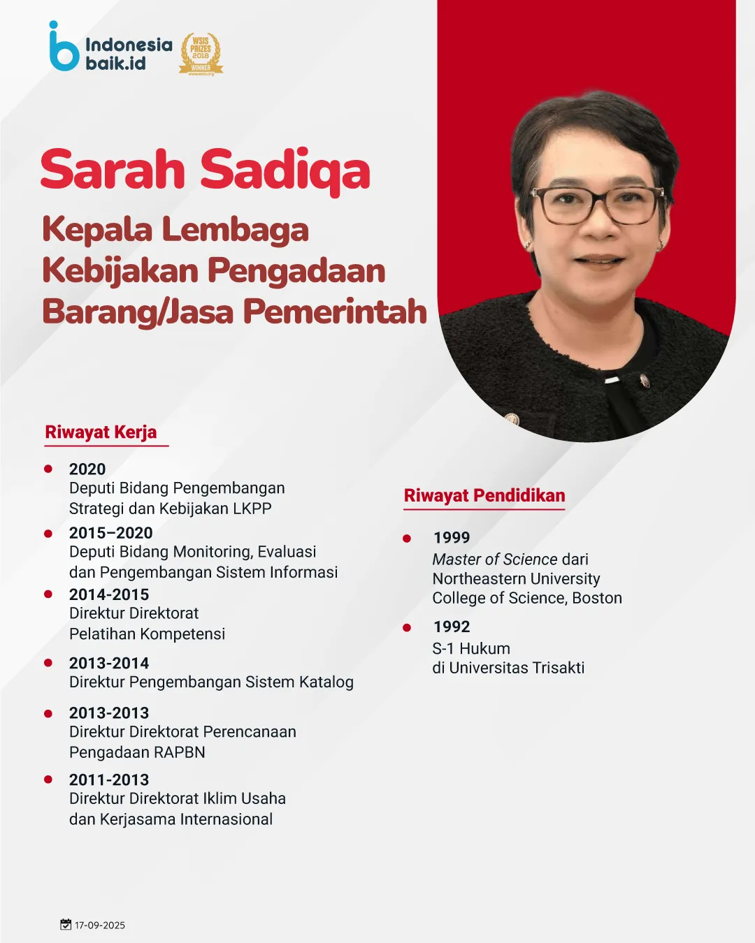 Pelantikan Sarah didasarkan pada Keppres Nomor 152/TPA Tahun 2025, yang mengatur pemberhentian serta pengangkatan dalam jabatan pimpinan tinggi di lingkungan LKPP.