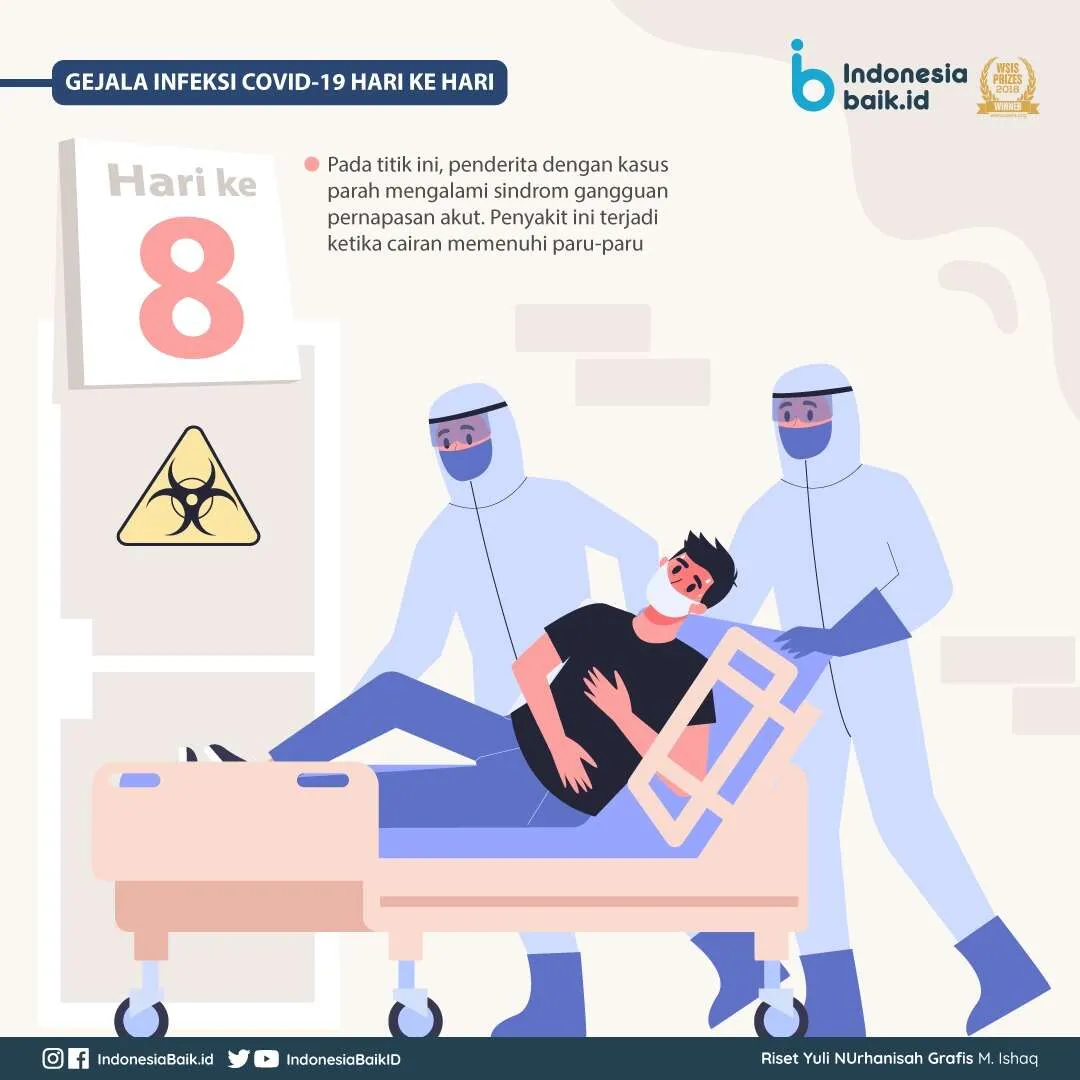 Hari ke-8, Pada titik ini, berdasarkan laporan CDC China, pasien dengan kasus parah mengalami sindrom gangguan pernapasan akut. Penyakit ini terjadi ketika cairan memenuhi paru-paru. Kondisi ini sering kali berakibat fatal.
