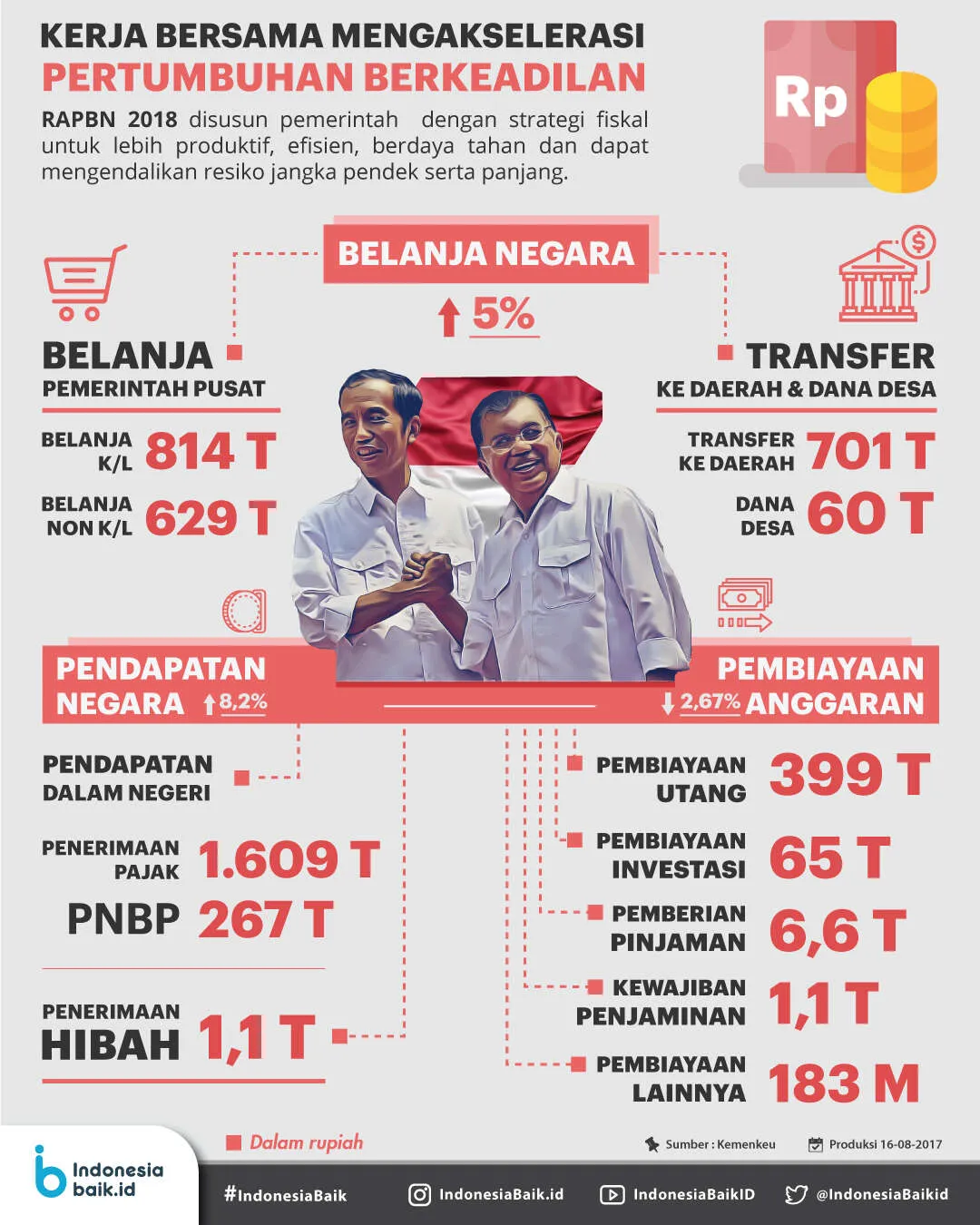 Tekat pemerintah untuk mengaklereasi pertumbuhan ekonomi berkeadilan yang menjadi proritas utama pembangunan Indonesia saat ini. Rancangan Anggaran Pendapatan dan Belanja Negara (RAPBN) Tahun 2018 mengacu kepada memantapan pengelolaan fiscal dan untuk mengakselerasi pertumbuhan ekonomi yang berkeadilan ini yang Berkeadilan dengan berpedoman 3 (tiga) kebijakan utama.