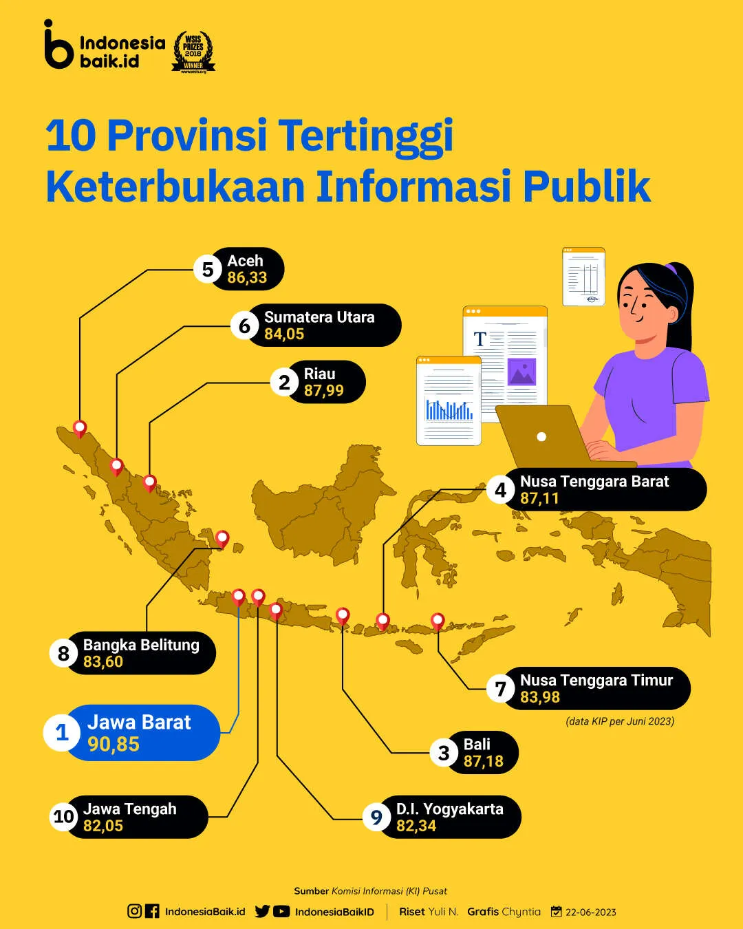 Indonesiabaik.id - Komisi Informasi Pusat (KIP) mencatat skor Indeks Keterbukaan Informasi Publik (IKIP) pada 2023 mencapai 75,40 atau meningkat 0,97 poin dibandingkan skor pada 2022 yang hanya sebesar 74,43.