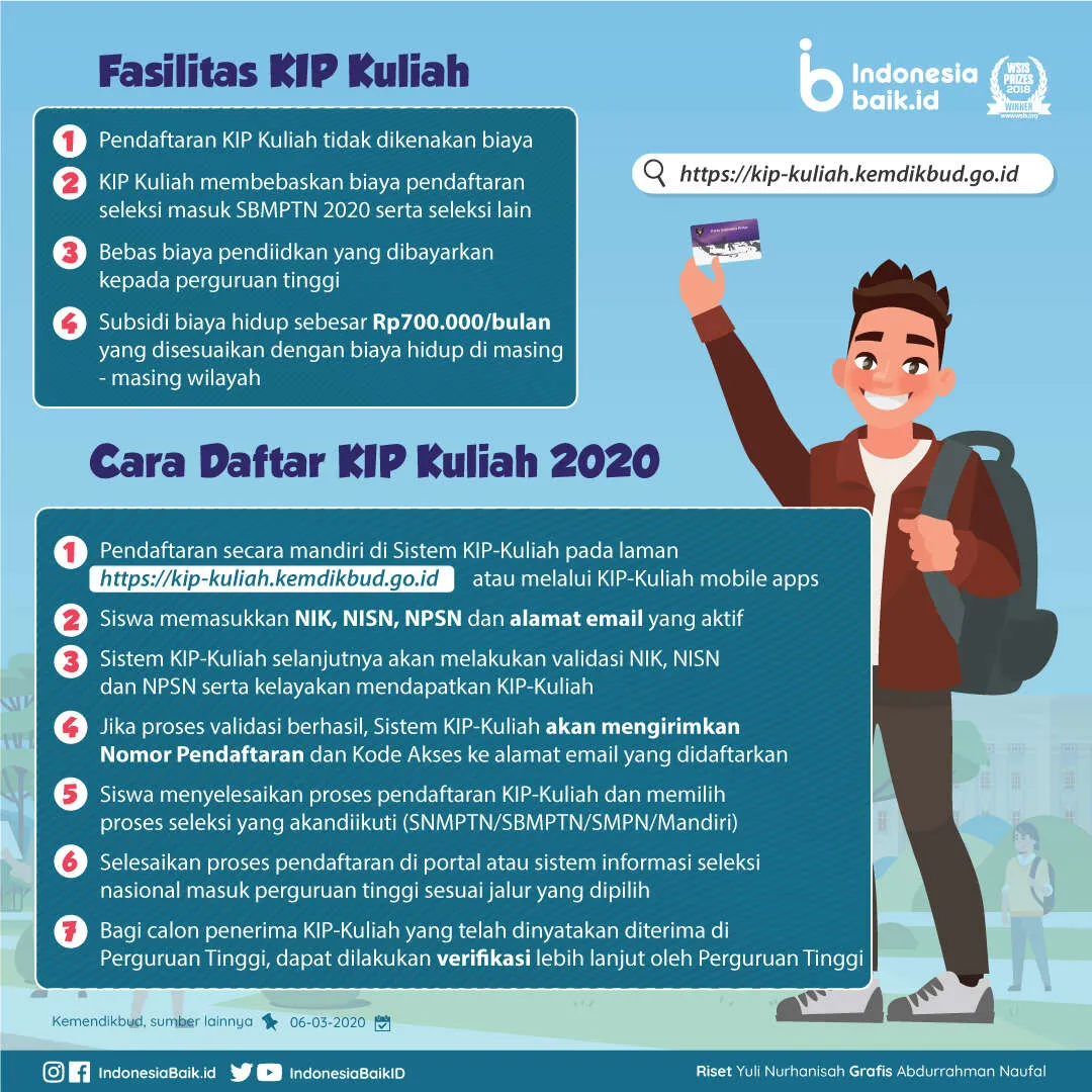 Indonesiabaik.id - Kementerian Pendidikan dan Kebudayaan (Kemendikbud) mengimbau kepada para siswa SMA/SMK/Sederajat yang akan lulus sekolah atau calon Mahasiswa dari keluarga tidak mampu untuk segera mendaftar Kartu Indonesia Pintar (KIP) Kuliah melalui laman kip-kuliah.kemdikbud.go.id.