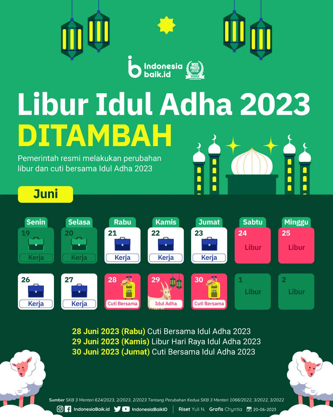 - 29 Juni : Hari Raya Idul Adha 1444 Hijriyah