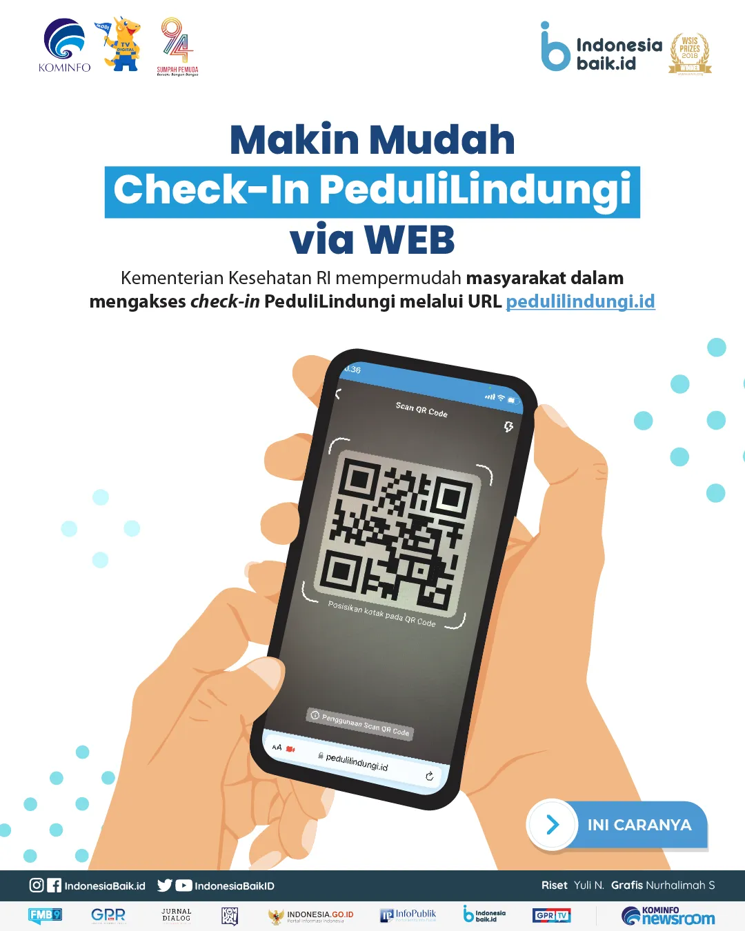 Indonesiabaik.id - Kementerian Kesehatan RI mempermudah masyarakat dalam mengakses check-in PeduliLindungi dengan menambah layanan check-in melalui mobile browser melalui situs pedulilindungi.id.
