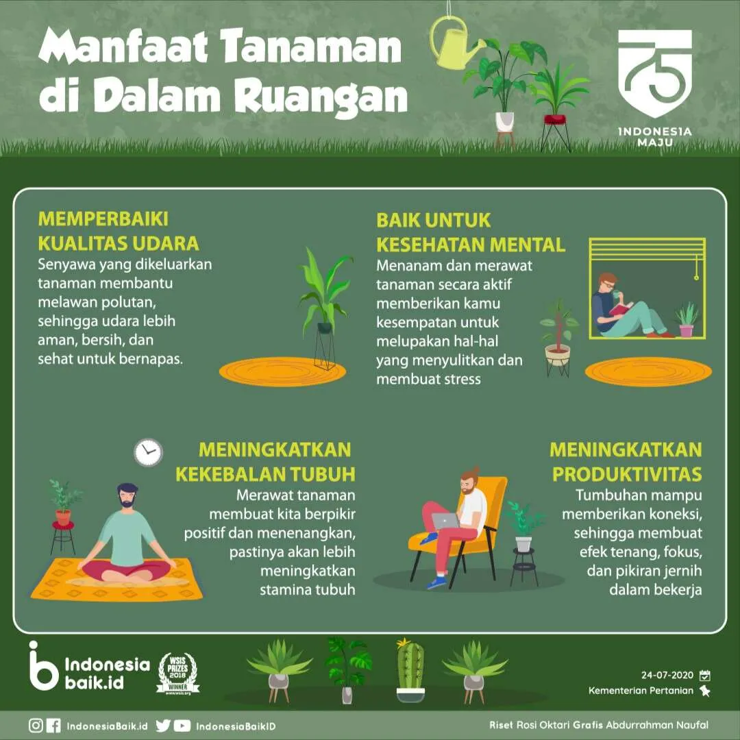 Berikut, Ka IBe sebutkan ya beberapa manfaat lain dari merawat tanaman di dalam ruangan.